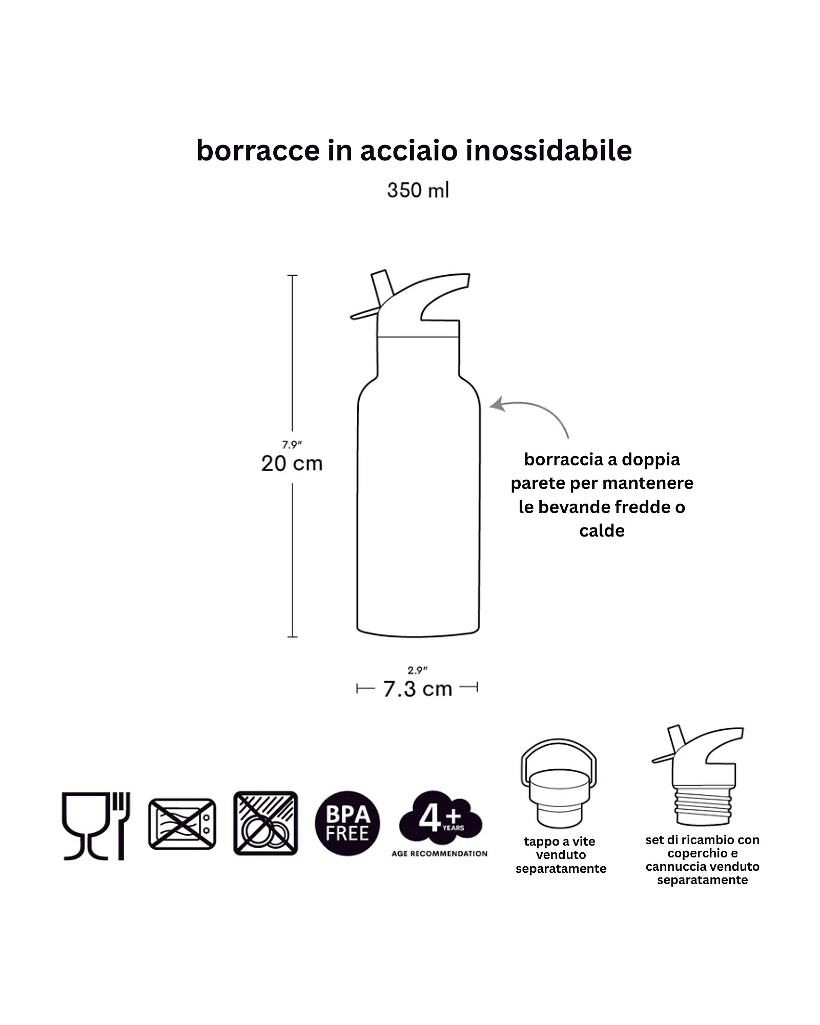 - Includes: A straw lid for cold drinks only. The stainless steel drink bottle lid for warm drinks is sold separately.