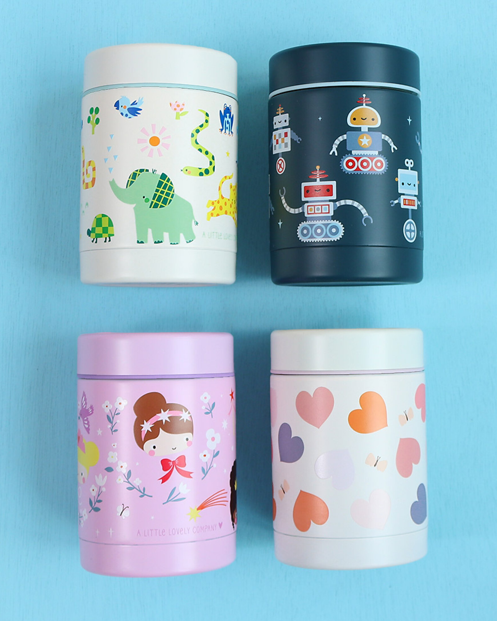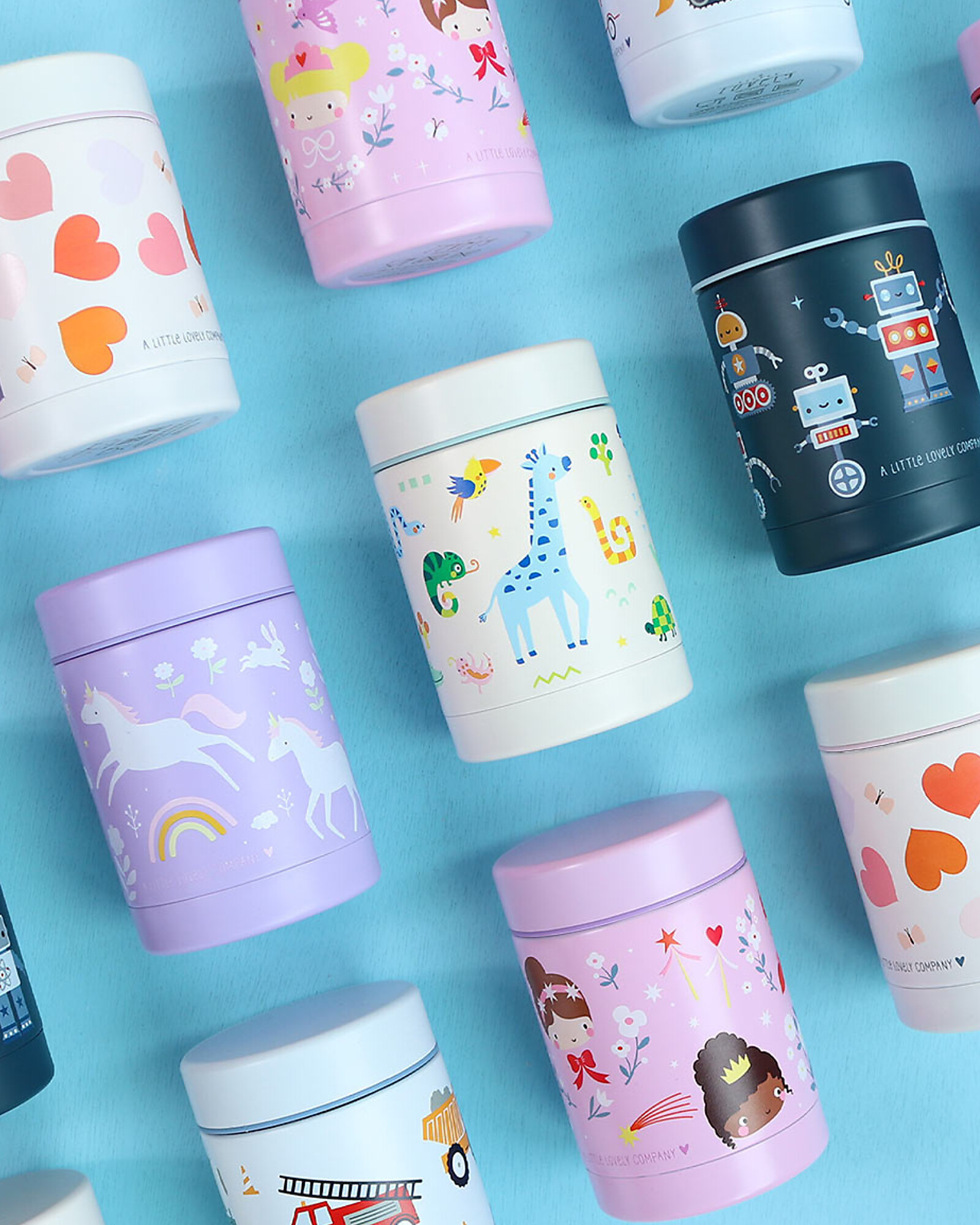 Give your child the warmth of a homemade meal wherever they go with the stainless steel food thermos by A Little Lovely Company. This magical thermal container is designed to keep meals hot or cold for hours, preserving nutrients and flavors perfectly. Thanks to its double-wall structure, it is the ideal ally for school, daycare, or family trips, ensuring a leak-proof and secure seal. The compact design and sweet illustrations make it irresistible, while the use of steel ensures a hygienic and sustainable choice. Nourish their growth with love and practicality.