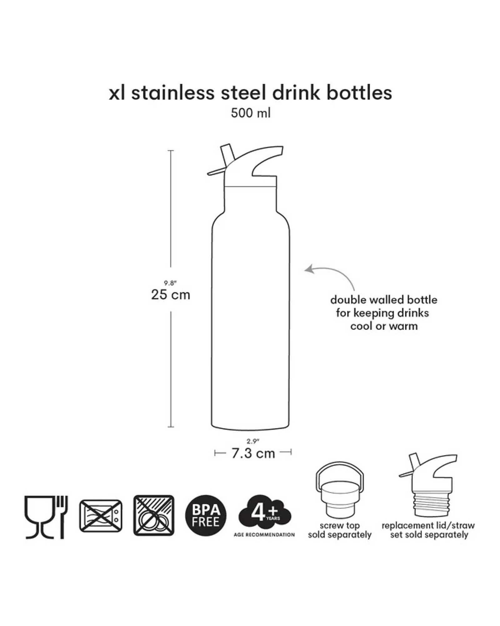 - Includes: Cap with straw, for cold drinks only. The stainless steel cap for hot drinks is sold separately.