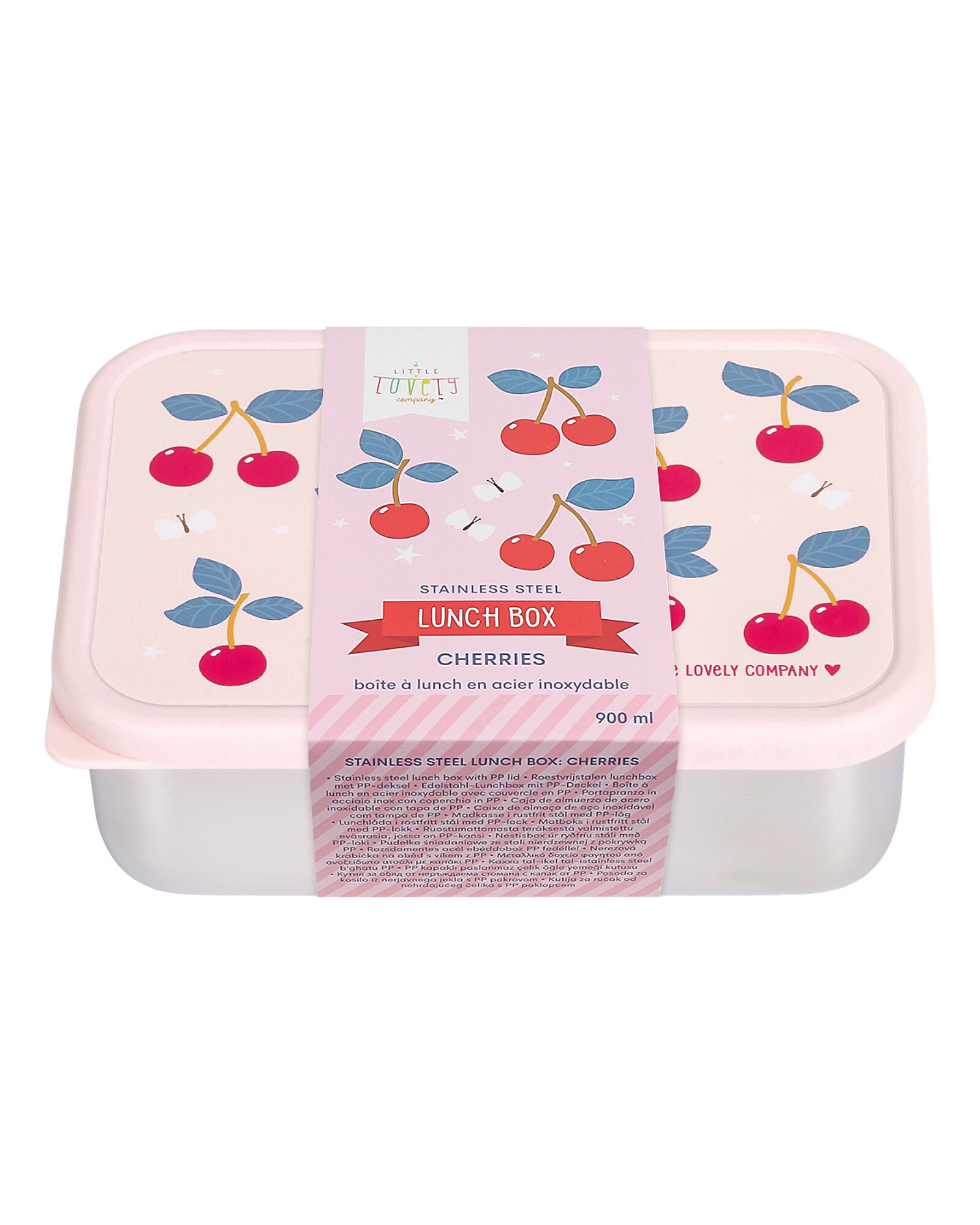 Steel Lunch Box - Cherries - 17.5 x 6 x 12.5 cm