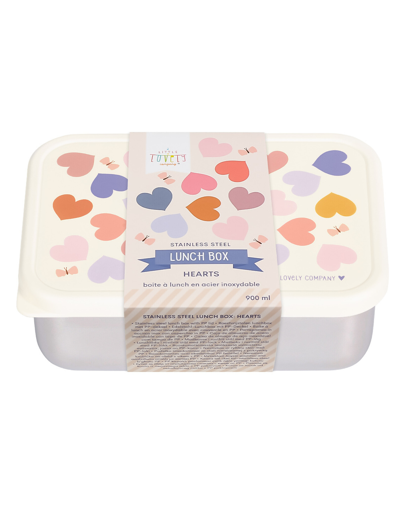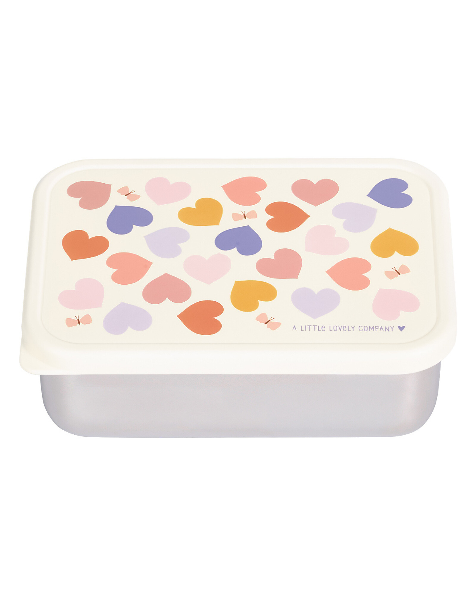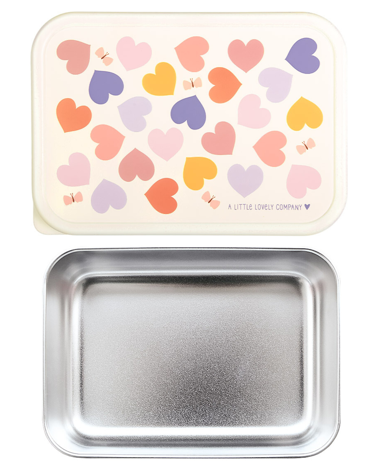 Steel Lunch Box - Hearts - 17.5 x 6 x 12.5 cm