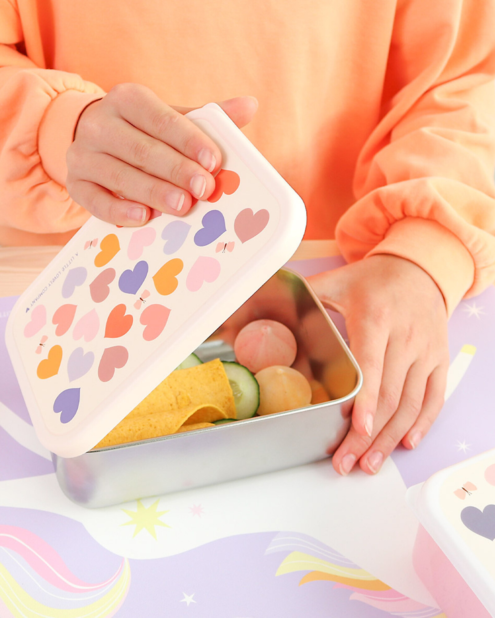 Imagine your children's smiles as they open their new stainless steel lunch box by A Little Lovely Company, a little treasure chest that keeps the taste of home safe. Made of high-quality stainless steel, this adventure companion is the eco-friendly and durable choice for environmentally conscious parents. Its sturdy structure protects every snack, keeping freshness intact for hours. Perfect for school or picnics in the park, it combines a modern design with unparalleled practicality. Choosing steel means embracing a sustainable and safe lifestyle, giving little ones an iconic accessory that turns every break into a special memory.