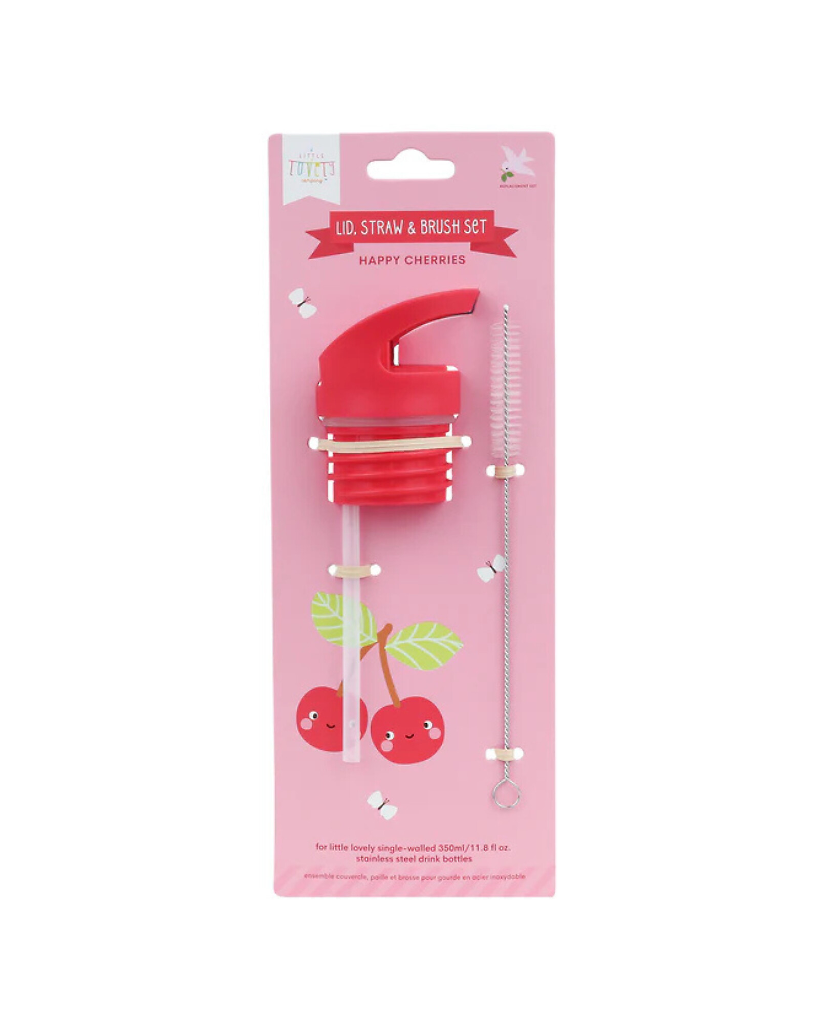 This Straw Cap and Pipe Cleaner Kit by A Little Lovely Company is compatible with their 350ml and 500ml Stainless Steel Drink Bottles.