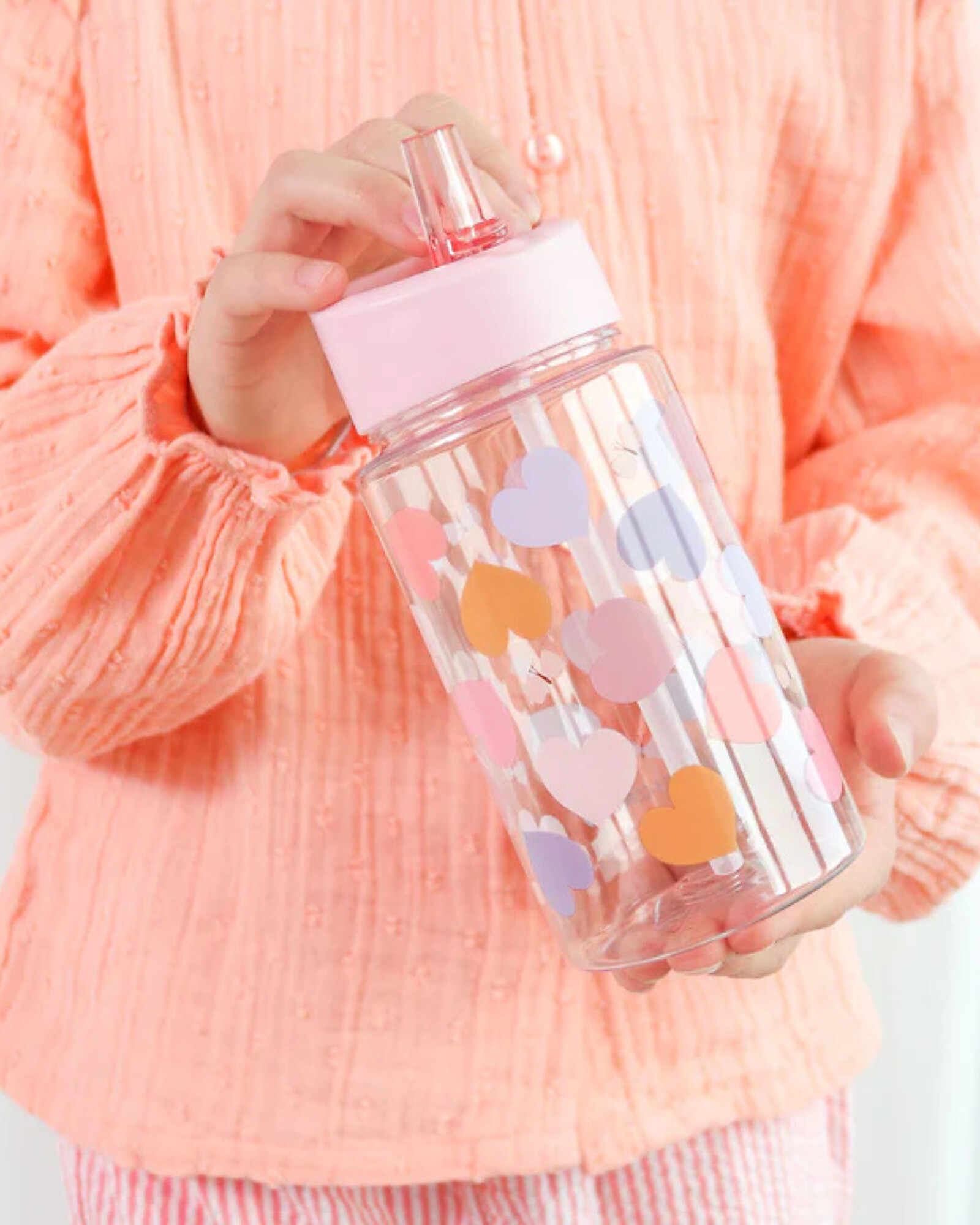 Water Bottle with Straw 450 ml - Hearts - BPA Free!