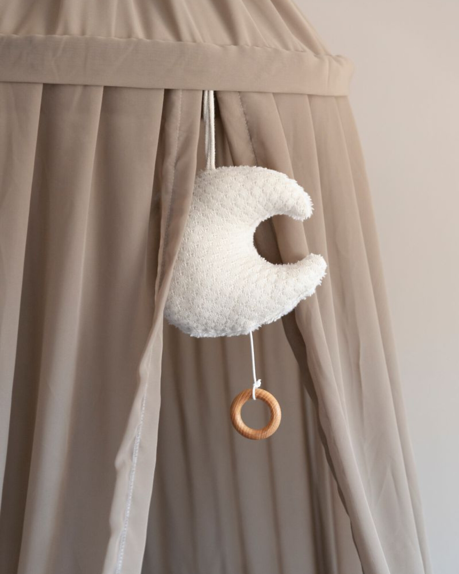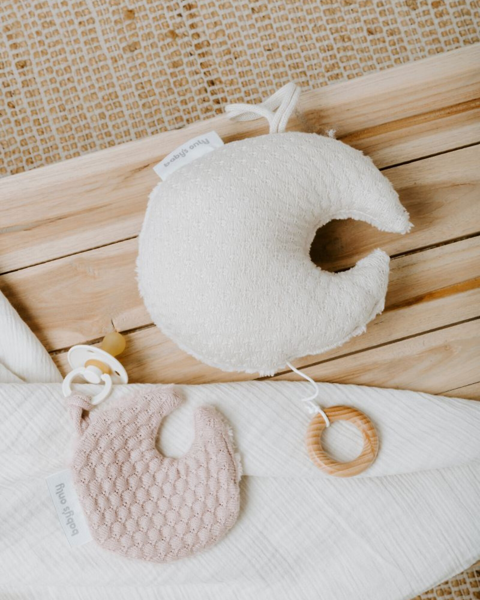 Transform the nursery into a calm and enchanting space with the beautiful music box in the shape of a moon from the Sky collection by Baby's Only. This charming music box is a visual delight with its distinctive knit pattern, adding a cozy and snug atmosphere to your little one's room. The soft and playful moon design makes this music box a true must-have for any nursery.