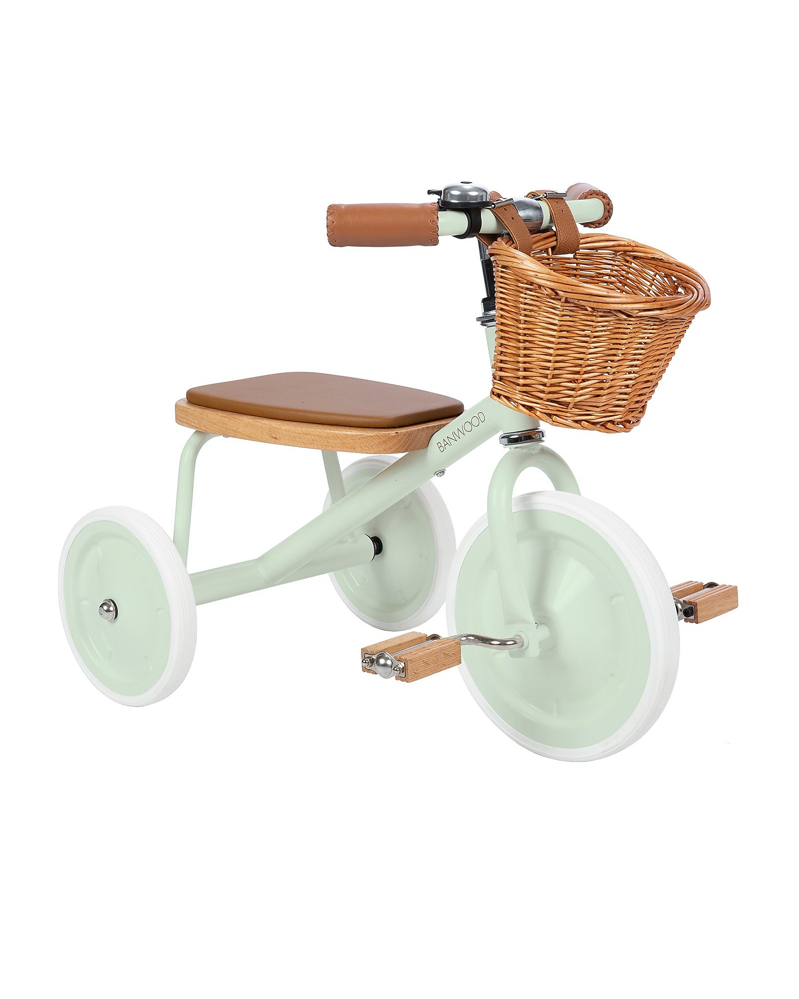 Wood and Vegan Leather Baby Trike - Mint - From 3 years old