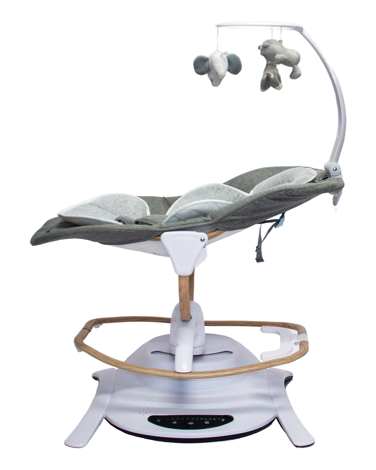 Equipped with a 5-point safety harness, it ensures protection during use. The toy bar with plush animals stimulates the baby’s senses, while the built-in melodies encourage relaxation. It operates both with a power cord and batteries, and is easy to assemble and clean.