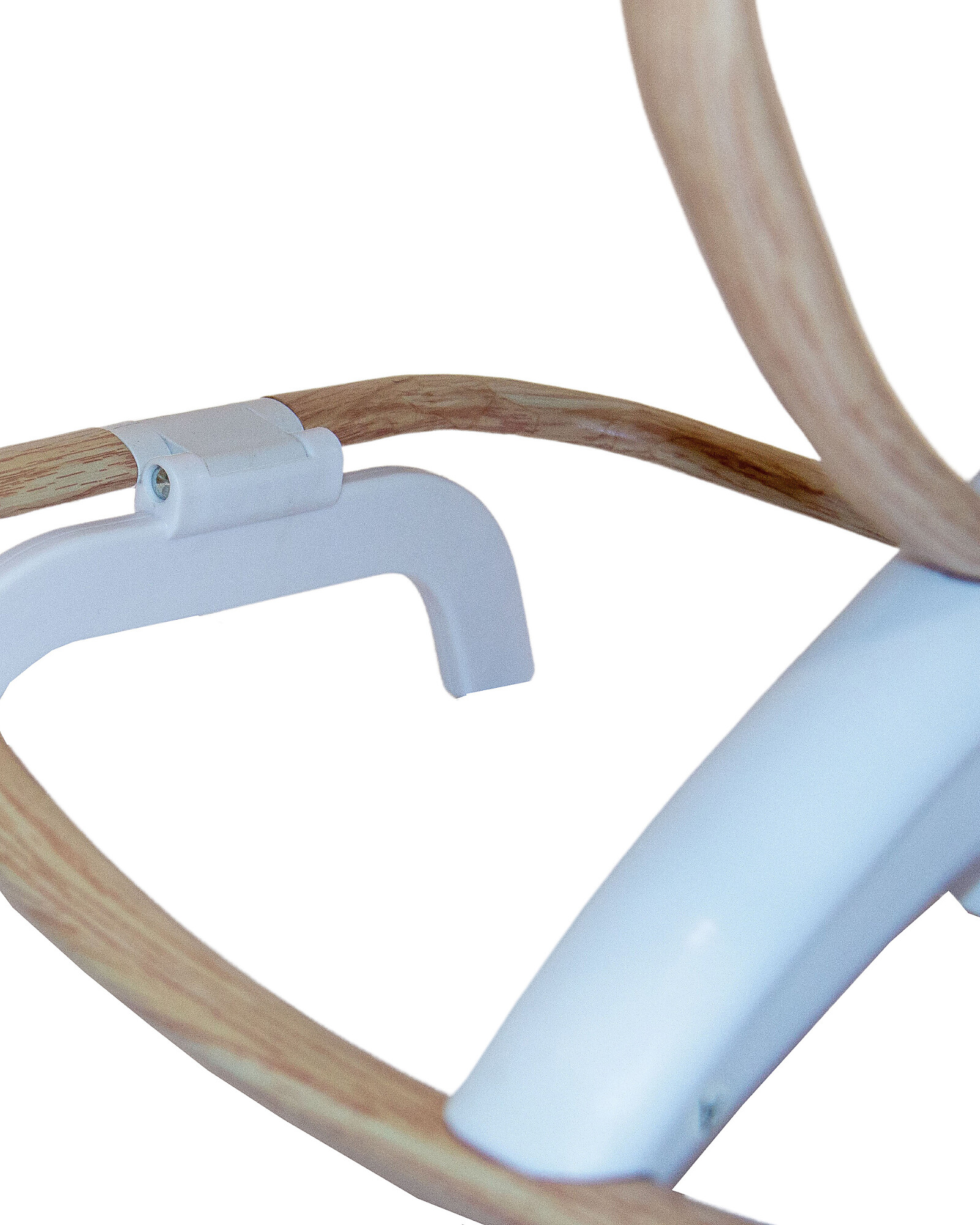 Thanks to the ability to lock the movement, it can also be used as a comfortable stationary chair. A practical, safe, and refined accessory for the newborn’s daily routine.