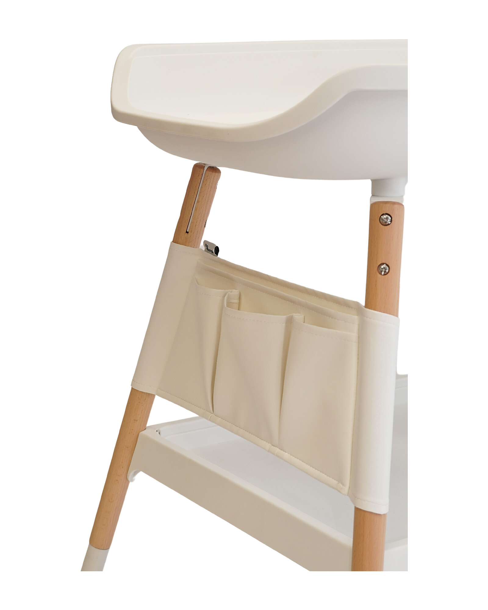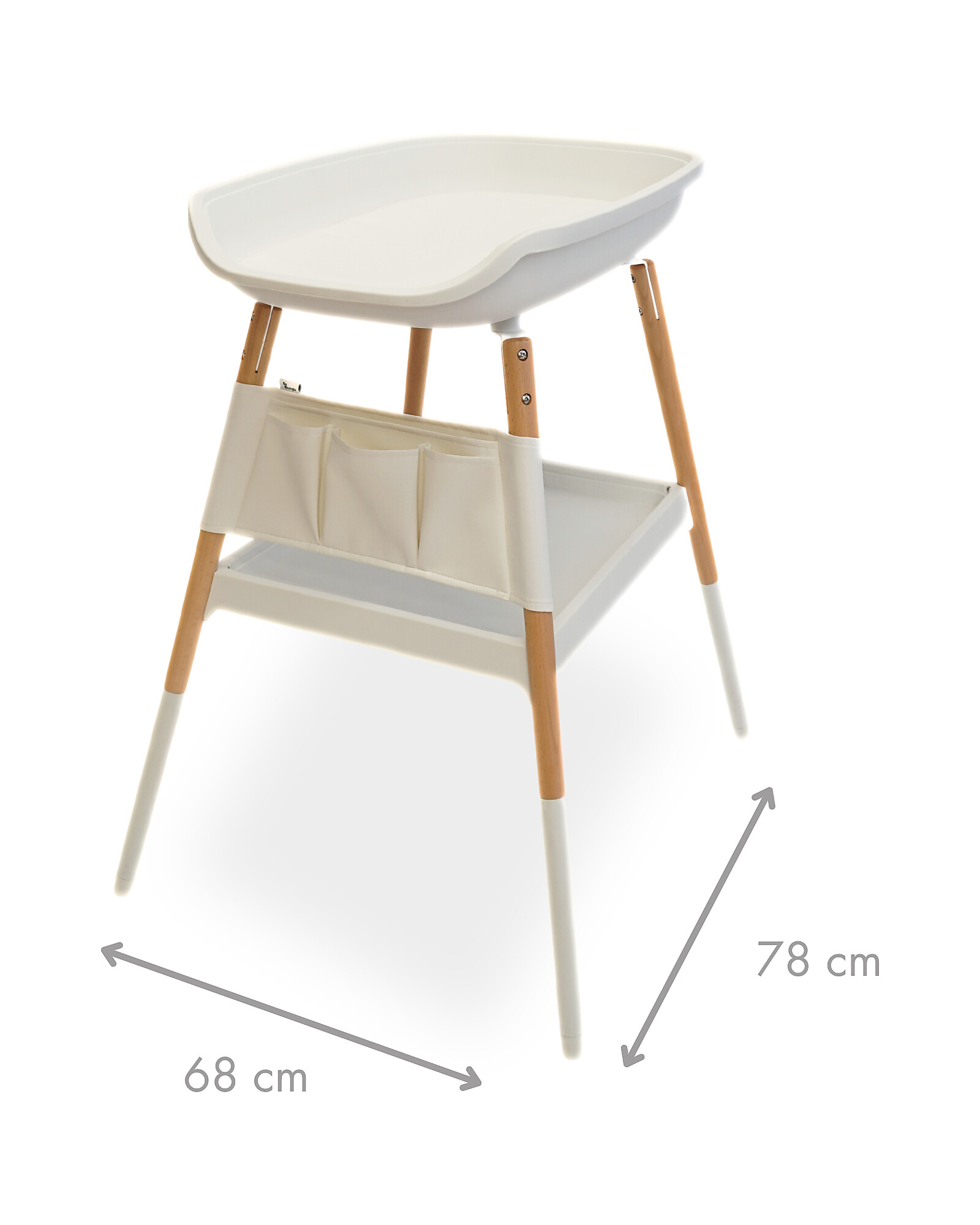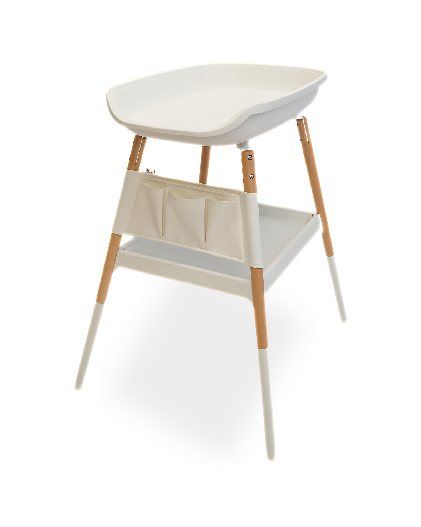 The Balneo Changing Table by BoJungle is an elegant and functional piece designed to simplify baby care in the early stages. Made with sturdy wooden legs and a stable supporting structure, it offers safety and durability. The changing surface is spacious and designed for comfort, with raised edges that help keep the little one safe during diaper changes. To keep everything organized, it features a side storage pocket and an integrated container to store diapers, wipes, and useful accessories within easy reach. Its size and weight make it a substantial piece, yet still manageable within a nursery space. The Balneo adapts to different styles and becomes a practical, tidy, and refined element for any maternal environment.