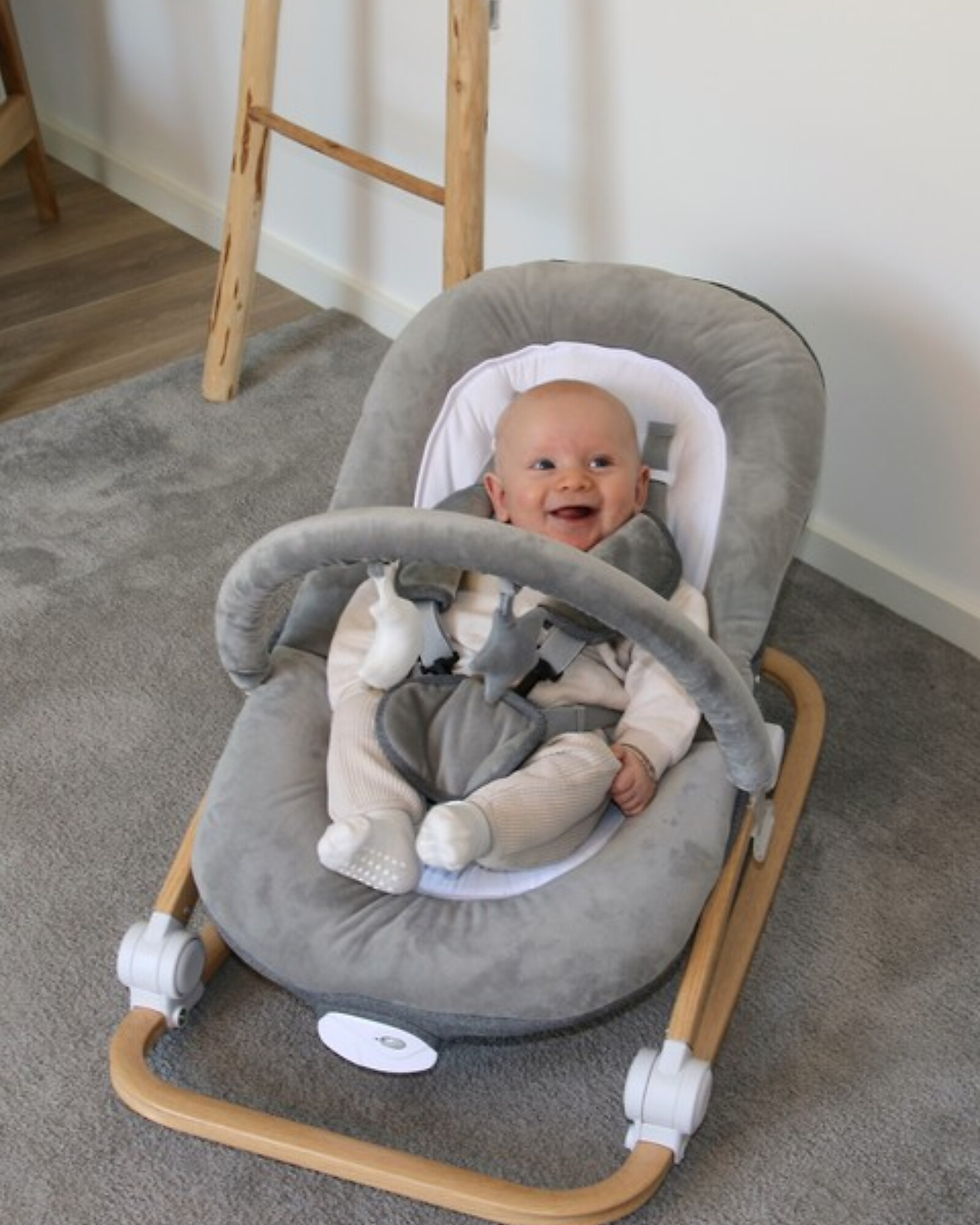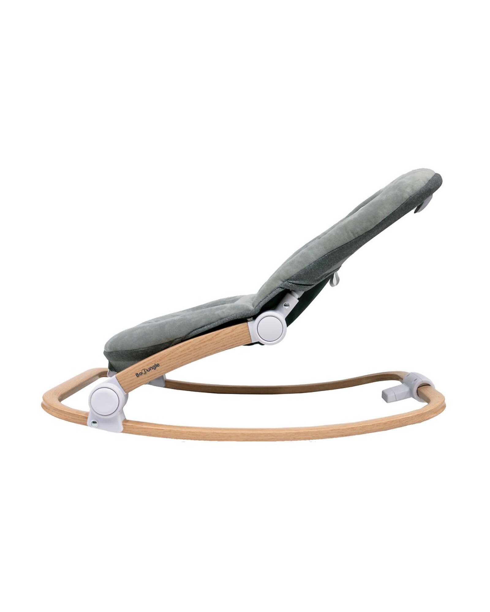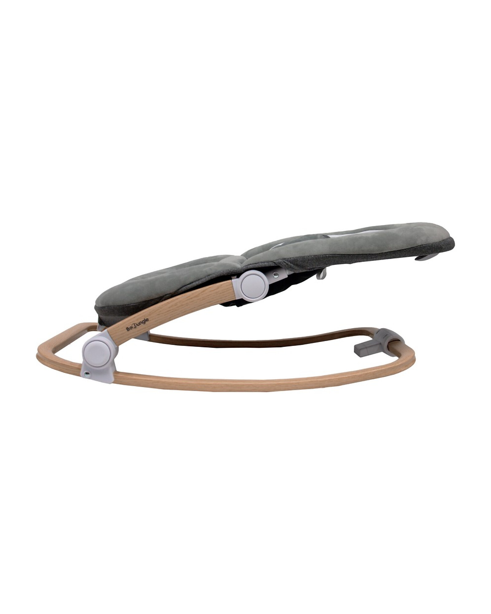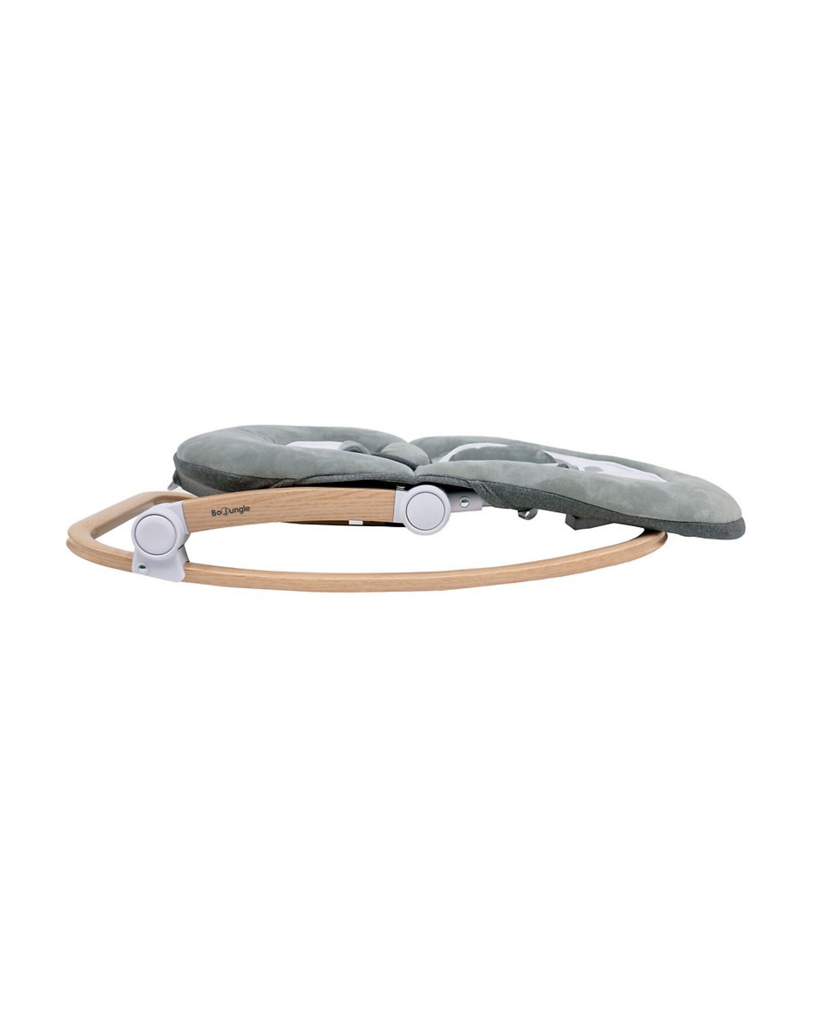The Bo Jungle Rocking Bouncer is a progressive bouncer designed to accompany your child from birth to approximately 5 years (0–18 kg). It combines elegant design and functionality, thanks to a lightweight yet durable aluminum frame and soft, breathable fabrics that ensure comfort at all times. It can be used both as a rocker and as a fixed seat, adapting to different stages of growth. The backrest is adjustable to three positions to ensure optimal posture, while the toy bar with two soft toys stimulates your child's curiosity and coordination. The seat also features a relaxing rocking motion and built-in melodies to encourage rest. The five-point safety harness ensures maximum protection, and the removable covers are easily machine washable. Its minimalist style in pure white fits perfectly into any home environment.