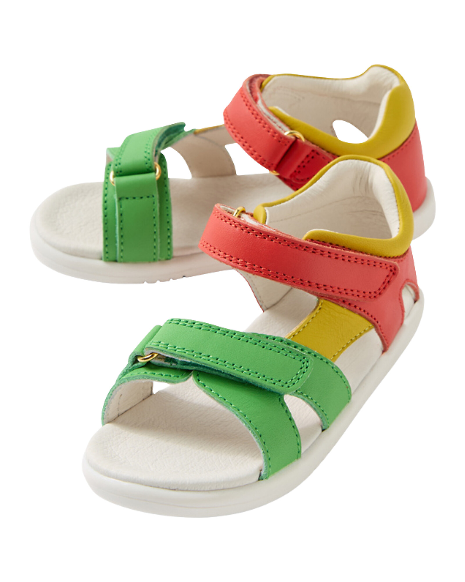 The I Walk Dune Sandal from the New Zealand brand Bobux is the ideal choice for a child's first steps. The quickdry leather strap keeps the foot fresh and secure. With a super flexible sole and velcro closure, it ensures comfort and a perfect fit on all surfaces. Before purchasing, measure the child's foot to choose the correct size.