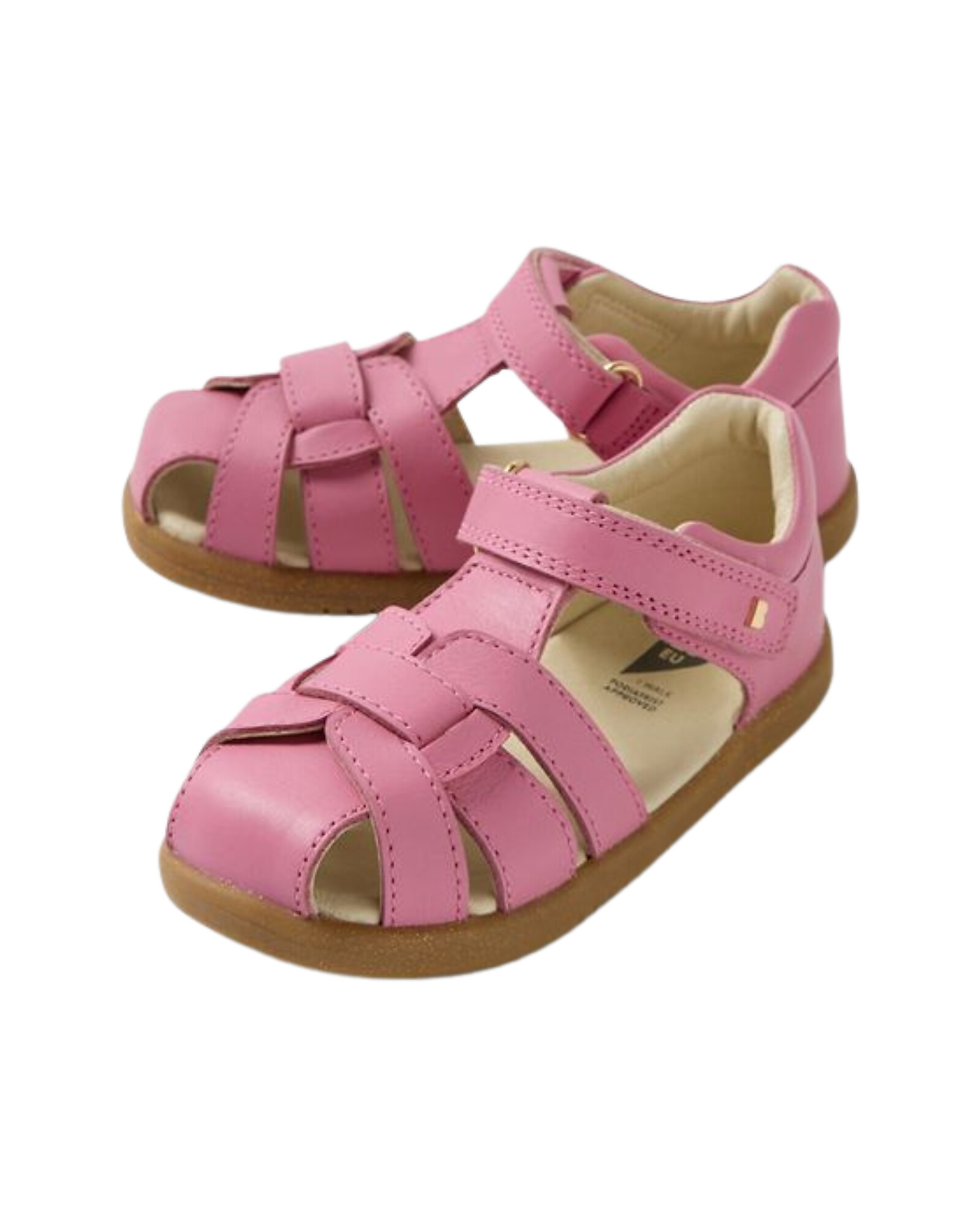 The Bobux Skip Twist sandals celebrate little ones’ summer with lightness and freedom. Crafted from breathable premium leather, they protect the foot while allowing it to breathe thanks to the open woven design. The adjustable hook-and-loop closure makes them quick and easy to put on, while the padded ankle collar wraps the foot in softness. The lightweight, flexible, durable sole follows every natural movement, supporting confident steps during play and exploration. Perfect for days at the park, traveling, or by the sea, they combine comfort, protection, and summer style in a sandal made for adventures under the sun.