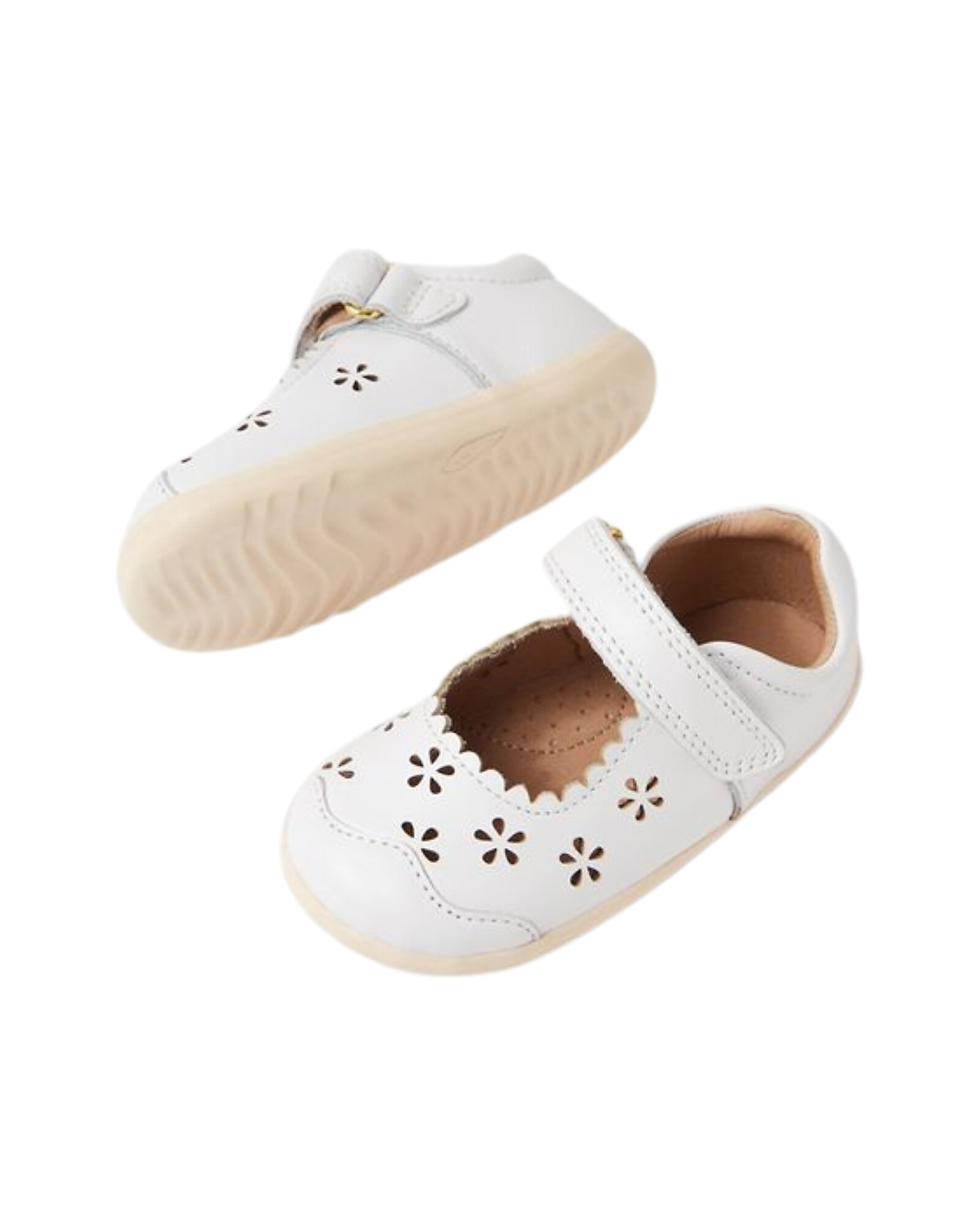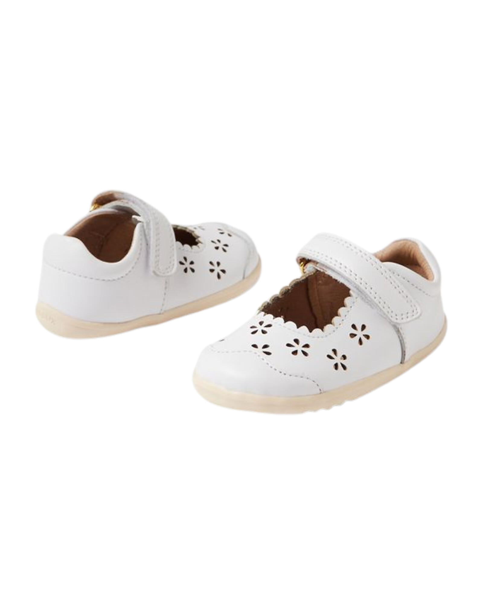 Step Up Heather Sandals - White - Carved Flowers - Premium Leather - First Steps