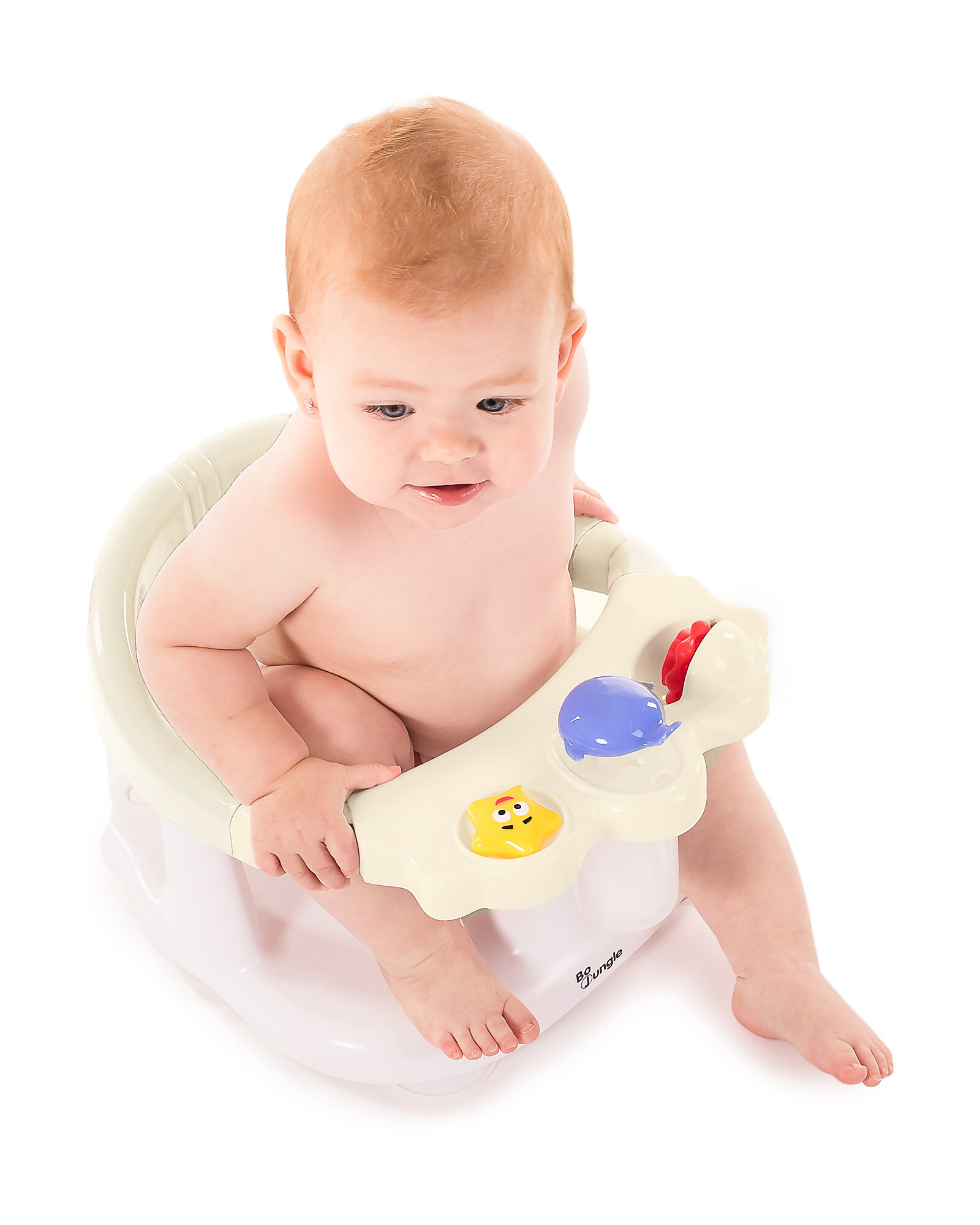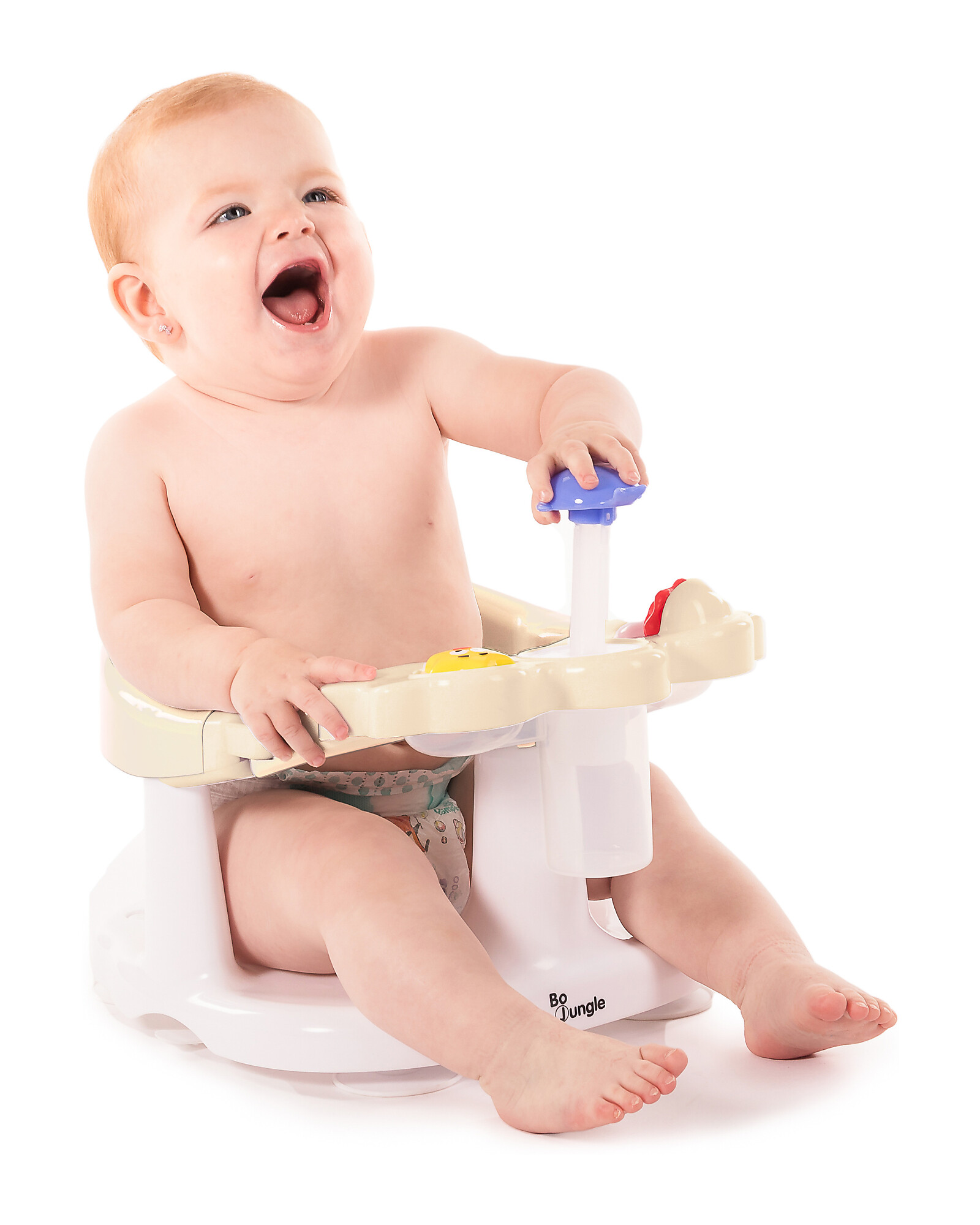 Discover the BoJungle Bath Seat, designed to make bath time safe, stable, and enjoyable for the baby. Thanks to four powerful suction cups, it firmly adheres to the bottom of the tub, providing a stable base during use. The ergonomic design features a high backrest and armrests that offer comfort and support even during water play. It is equipped with three integrated toys to entertain the baby and stimulate curiosity during the bath. The structure includes a front opening that facilitates safe entry and exit, reducing the risk of slipping. It is suitable for a minimum age of 5 months up to about 10 months. This seat is the perfect ally for parents seeking a balance between safety, fun, and practicality during bath time.