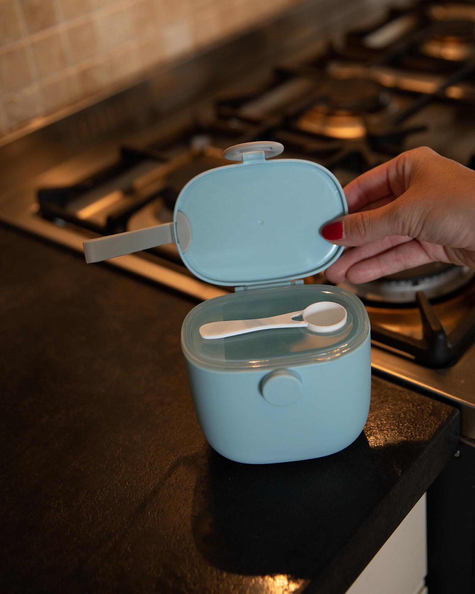 The Powdered Milk or Snack Container is the ideal compact and portable solution for storing milk or powdered supplements wherever you are. Made of lightweight yet durable material, it fits perfectly into bags, changing tables, or backpacks, ensuring hassle-free transport. It includes a practical measuring scoop for precise dosing, helping you avoid waste or mess. Easy to clean to ensure hygiene and safety at all times. With a capacity of 250 g, it holds enough for a full day out – ideal for trips, walks, visits, or when you're on the go. Its compact size makes it discreet yet spacious. This container is designed for parents who value organization, practicality, and reliability in managing their baby's feeding with a single gesture. An essential accessory to store feeding powder in an orderly and accessible way, wherever you go.