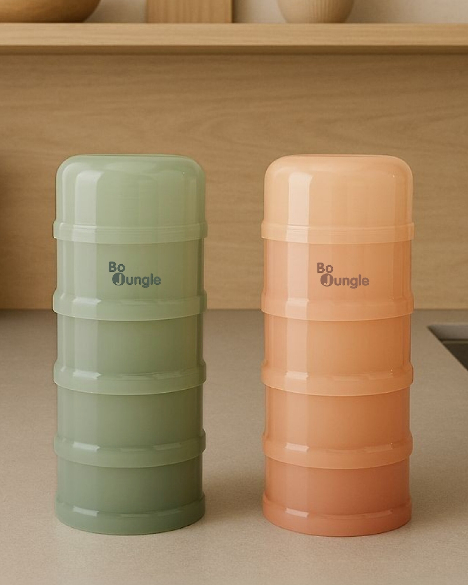 This Set of Stackable Powdered Milk Containers is ideal for organizing and dosing your baby's food in a practical and hygienic way throughout the day. Composed of 4 separate compartments and a practical pouring spout, it allows you to prepare doses in advance and store them safely. The airtight lid ensures a perfect seal, protecting the milk from moisture and contamination.
