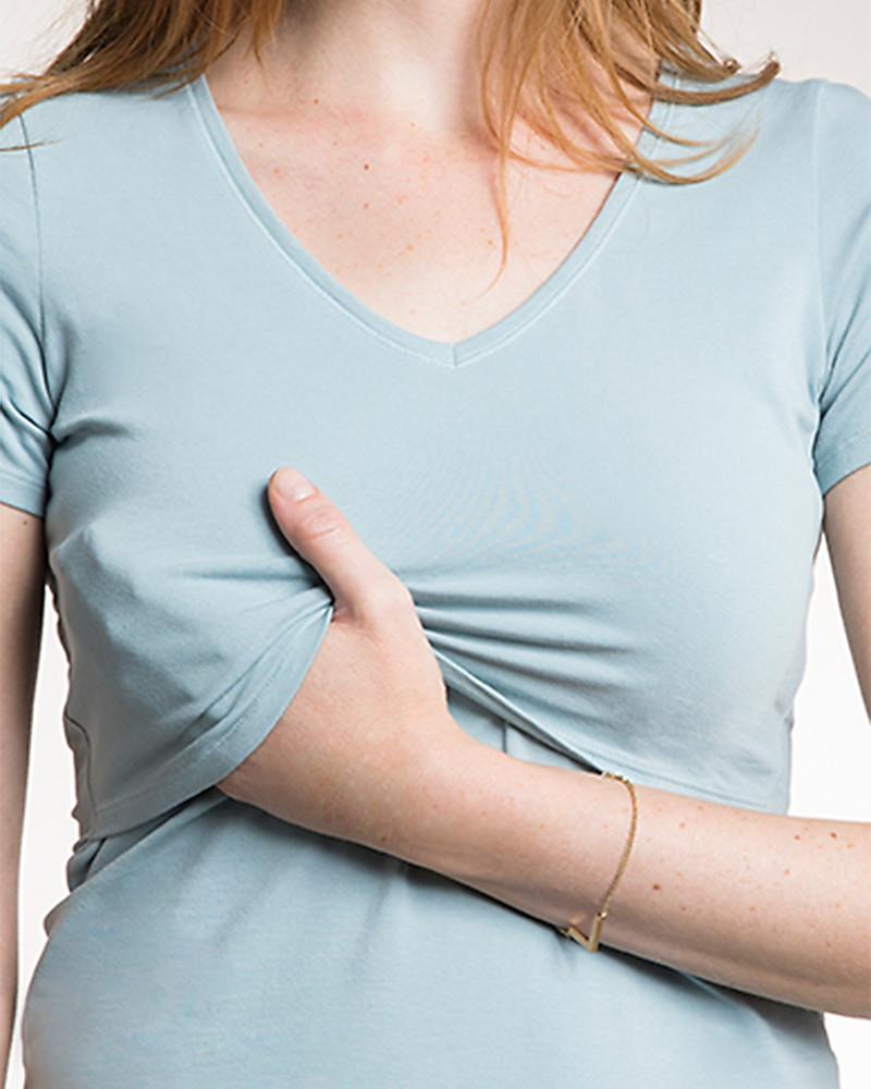 Maternity and Nursing Organic Cotton V Neck Short Sleeve Top - Ice Blue