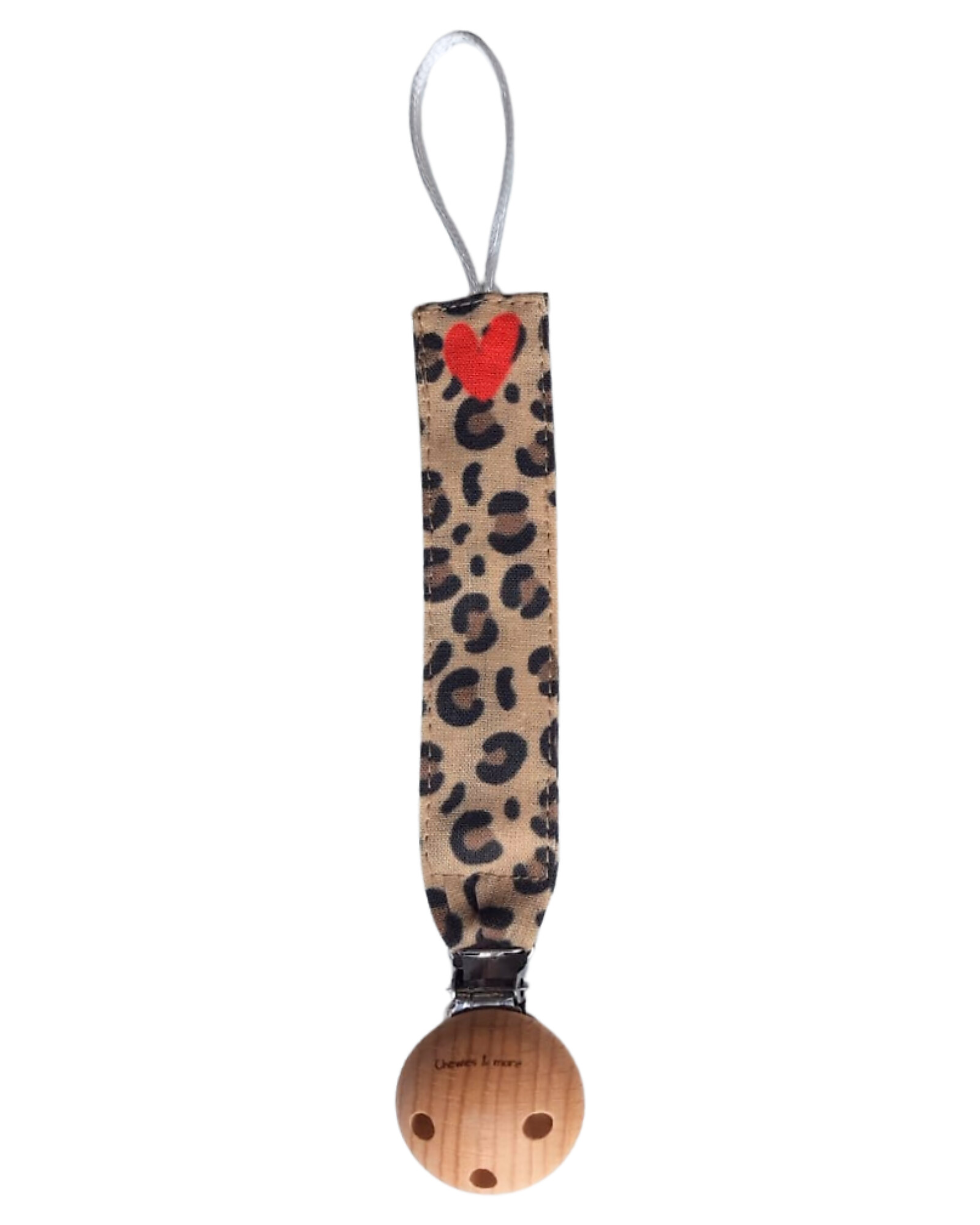 Linen pacifier clip - food-grade silicone ring - leopard print