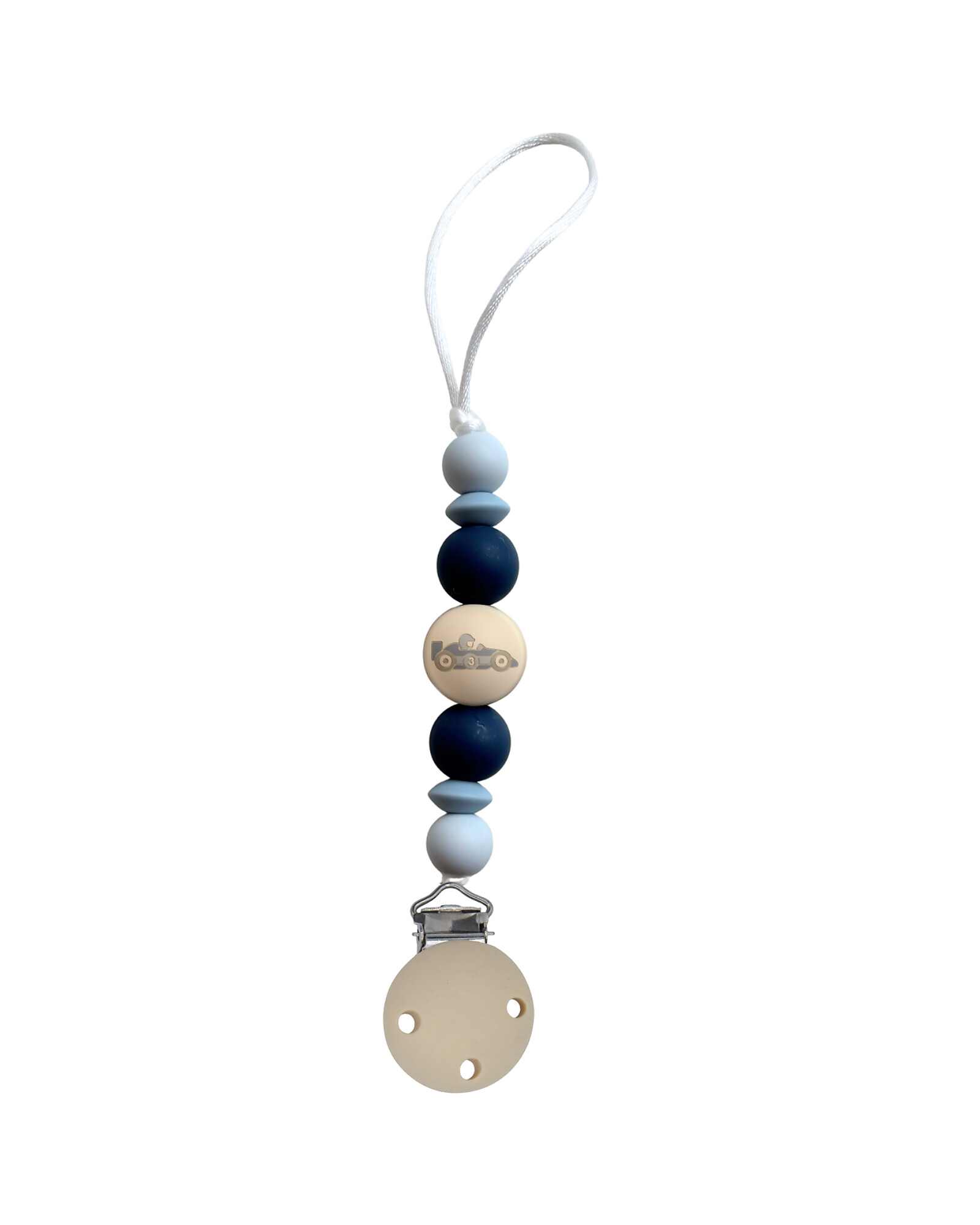 New Born Silicone Pacifier Clip - Teether - Blue - Racecar Collection