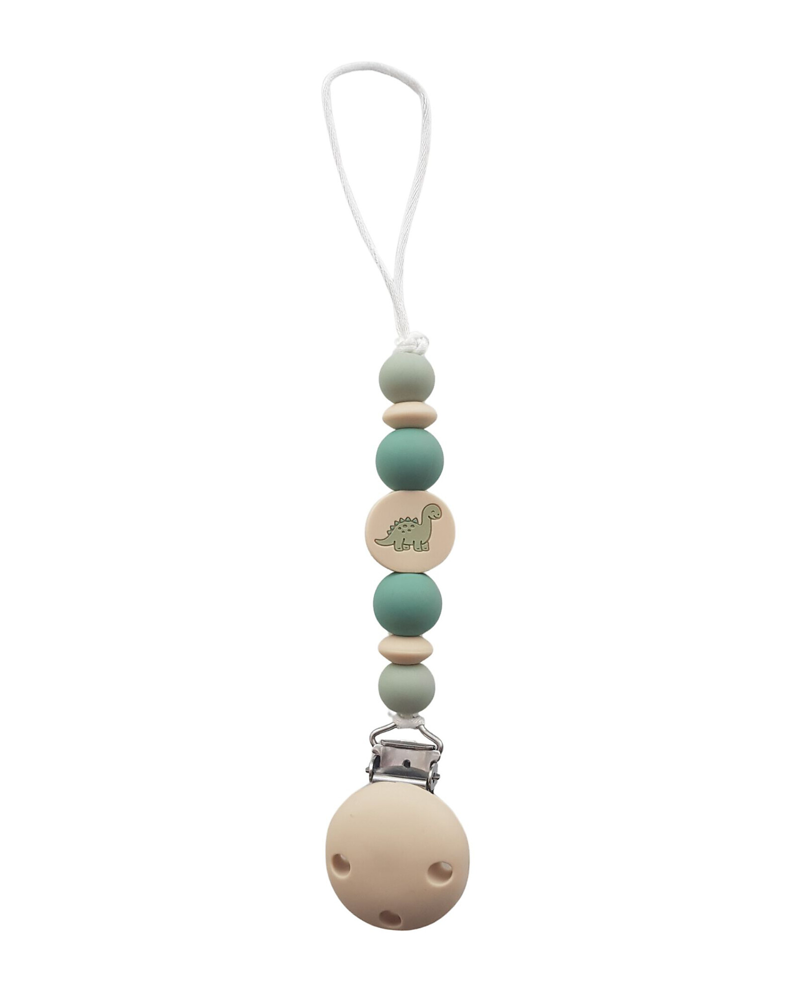 New Born Silicone Pacifier Clip - Teether - Teal - Dino Collection