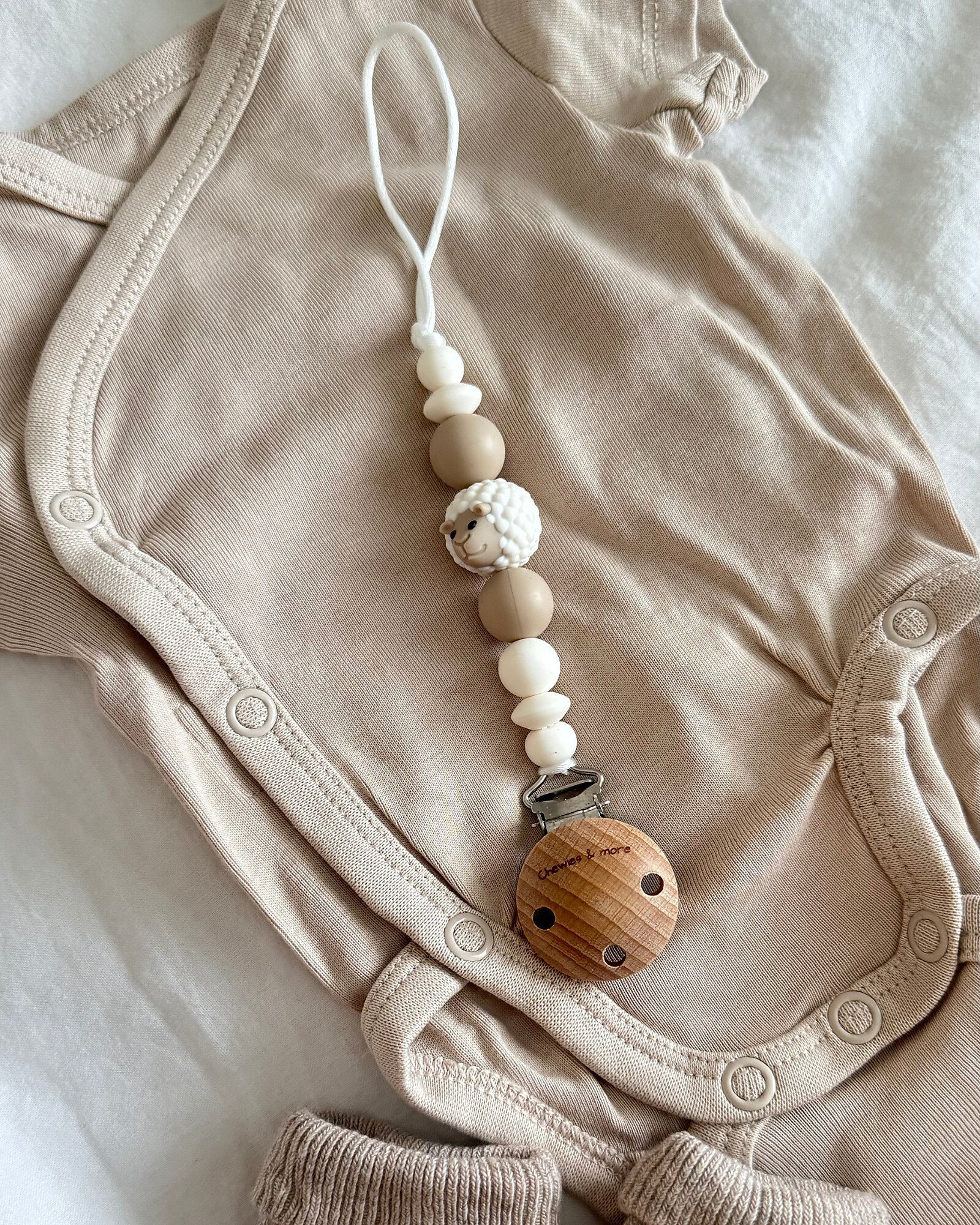 New Born Silicone Pacifier Clip - Teether - White - Sheep Collection
