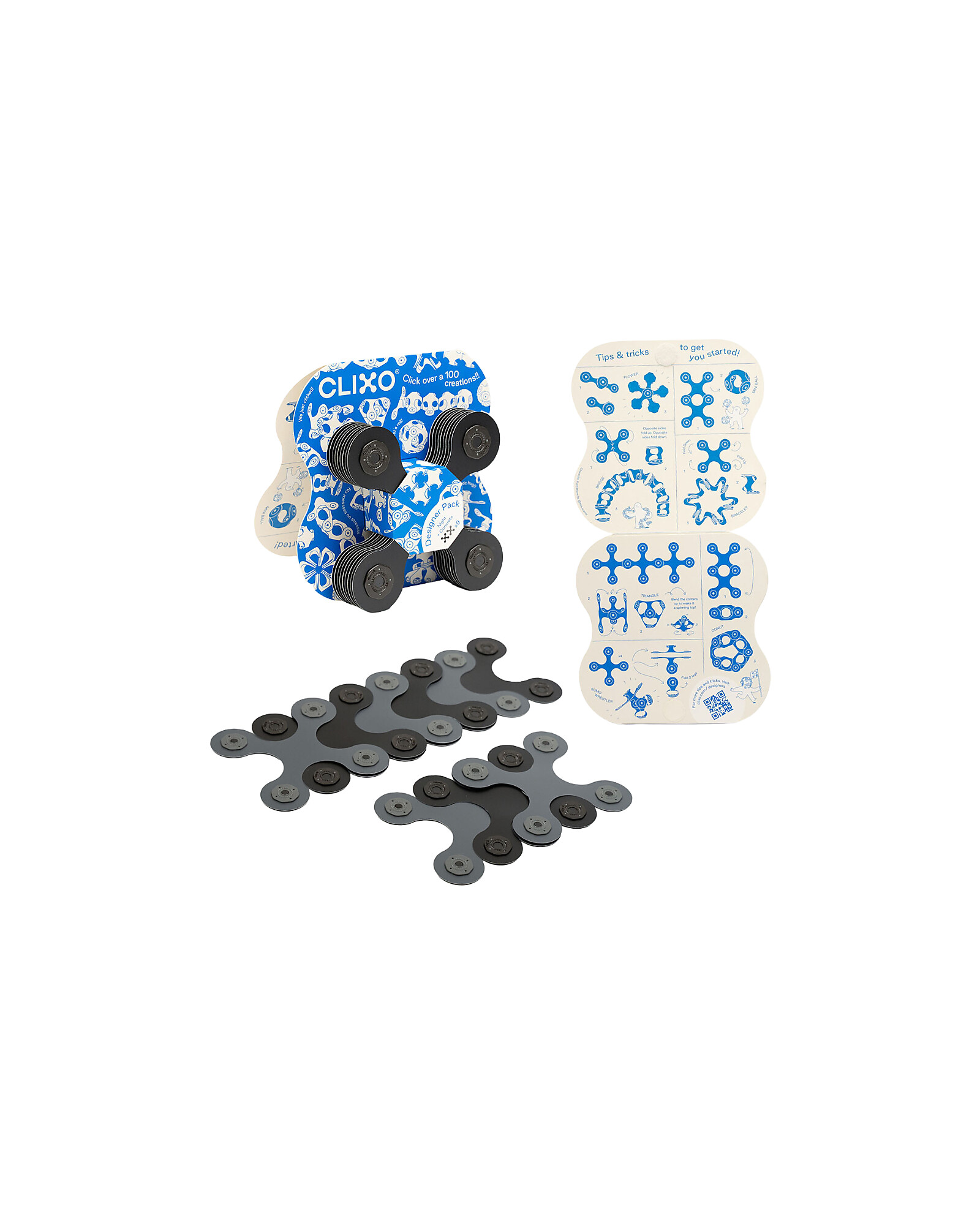 Endless possibilities to make your imagination come true, with Clixo! The Designer pack set consists of 9 pieces in the characteristic Quad shape, from which you can create countless 3D shapes: just a simple click and the powerful magnets will do the rest. Inspired by a sustainable philosophy, it is made of recyclable synthetic paper and has magnets at its ends that will allow you to make shapes upon shapes! It is also dishwasher safe! A versatile and colorful toy, which encourages STEAM learning, approaching scientific, artistic and mathematical disciplines through play. You can always carry it with you because Clixo is a compact, light toy that fits in your hand!