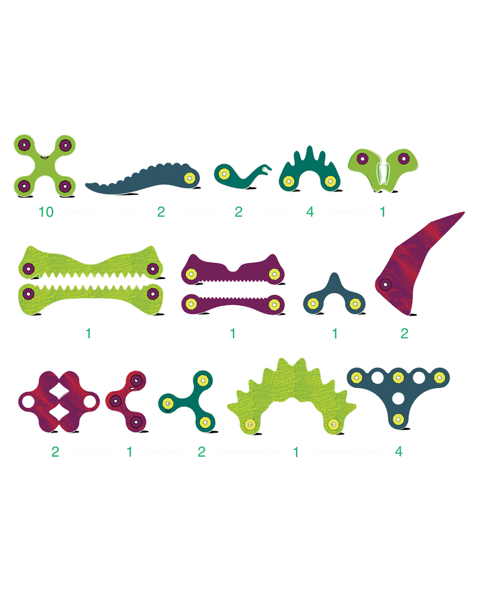 - Color: Green, yellow, light blue, fuchsia