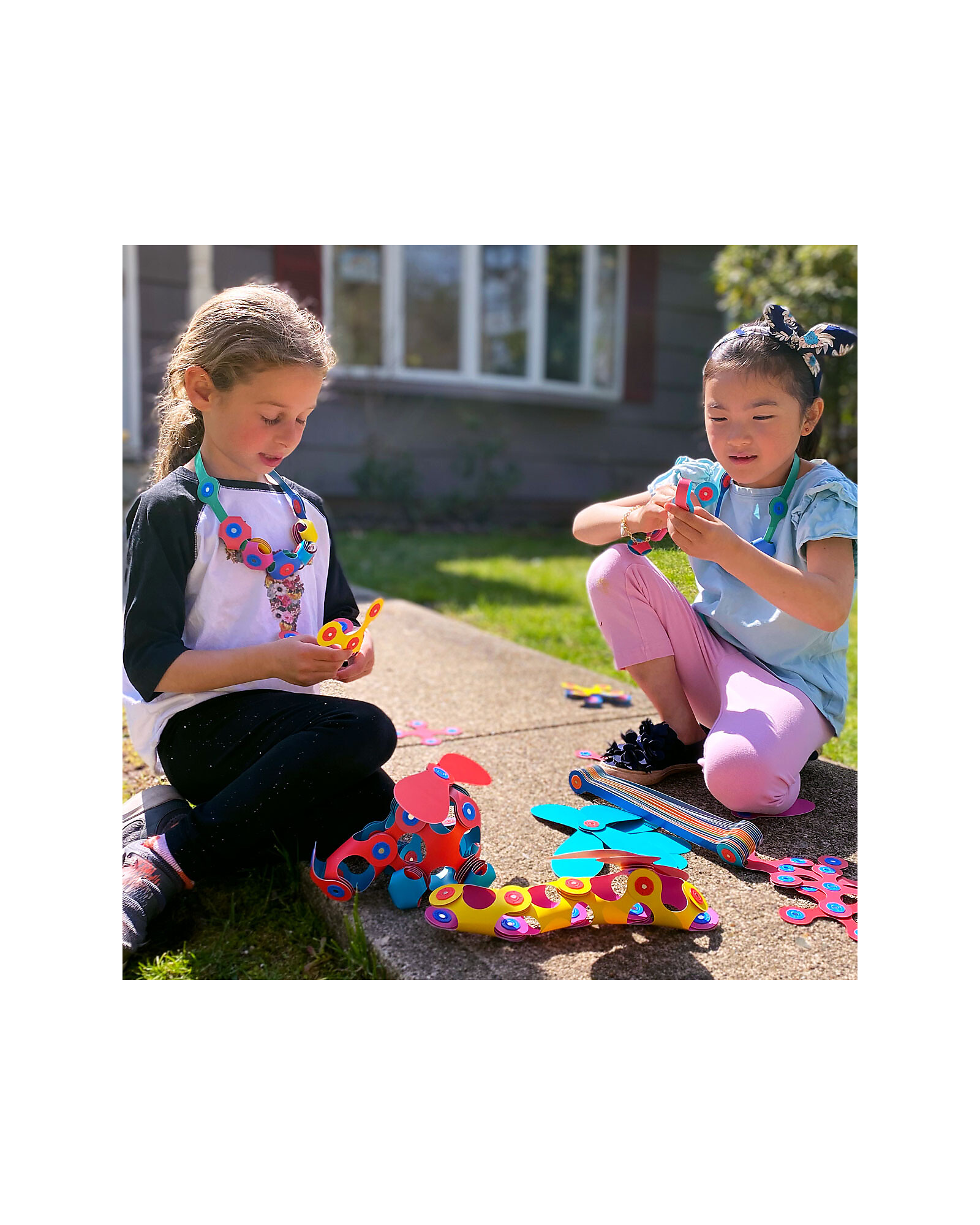 Endless possibilities to make your imagination come true, with Clixo! With Super Rainbow pack set you can create countless colorful 3D designs, just a simple click and the powerful magnets will do the rest. In the "Super" version the game increases, thanks to the 60 pieces available to give life to your imagination. Made of recyclable synthetic paper, it has magnets at its ends that will allow you to make shapes on shapes, you have all the colors of the rainbow at your disposal! With the 3 spinners included you will add a fun touch to the game, increasing the creative possibilities! It is also dishwasher safe! A versatile and colorful toy, which encourages STEAM learning, approaching scientific, artistic and mathematical disciplines through play. You can always carry it with you because Clixo is a compact, light toy that fits in your hand!