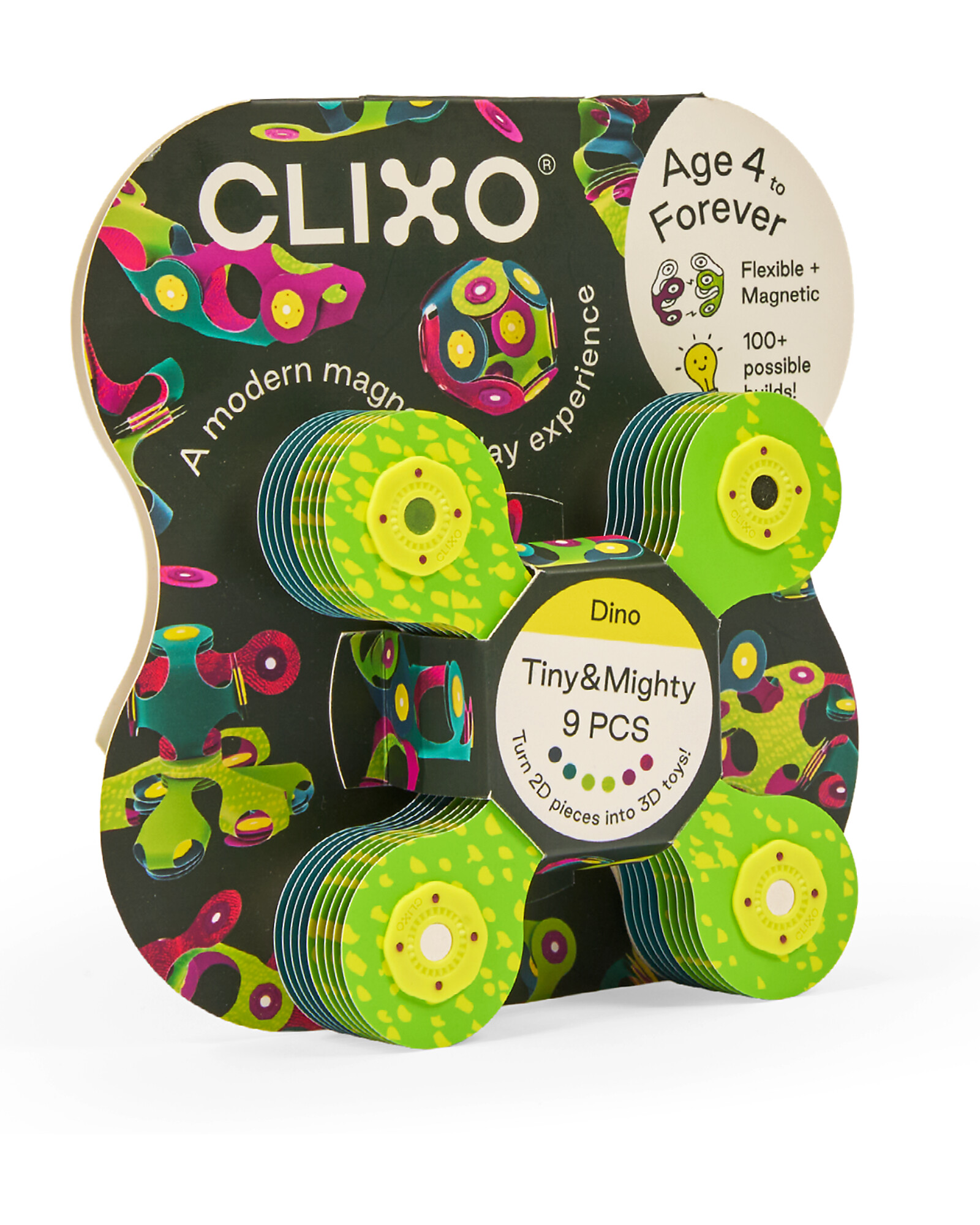 Endless possibilities to make your imagination come true, with Clixo! The Tiny&Mighty set consists of nine pieces in the characteristic Quad shape, from which you can create countless colorful 3D shapes, just a simple click and the powerful magnets will do the rest. Made of recyclable synthetic paper, it has magnets at its ends that will allow you to make shapes on shapes! It is also dishwasher safe! A versatile and colorful toy, which encourages STEAM learning, approaching scientific, artistic and mathematical disciplines through play. You can always carry it with you because Clixo is a compact, light toy that fits in your hand!