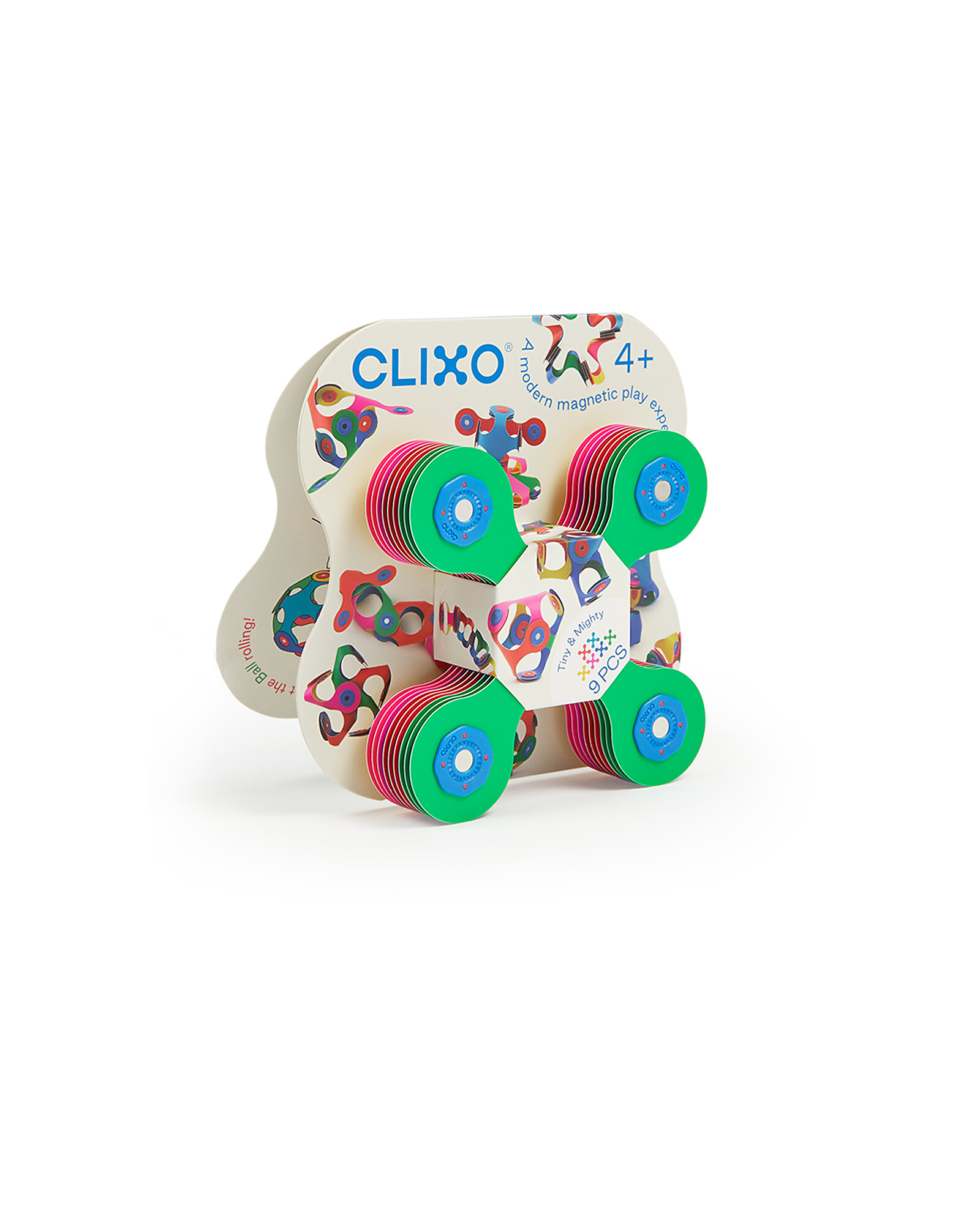 Endless possibilities to make your imagination come true, with Clixo! The Tiny&Mighty set consists of nine pieces in the characteristic Quad shape, from which you can create countless colorful 3D shapes, just a simple click and the powerful magnets will do the rest. Made of recyclable synthetic paper, it has magnets at its ends that will allow you to make shapes on shapes! It is also dishwasher safe! A versatile and colorful toy, which encourages STEAM learning, approaching scientific, artistic and mathematical disciplines through play. You can always carry it with you because Clixo is a compact, light toy that fits in your hand!
