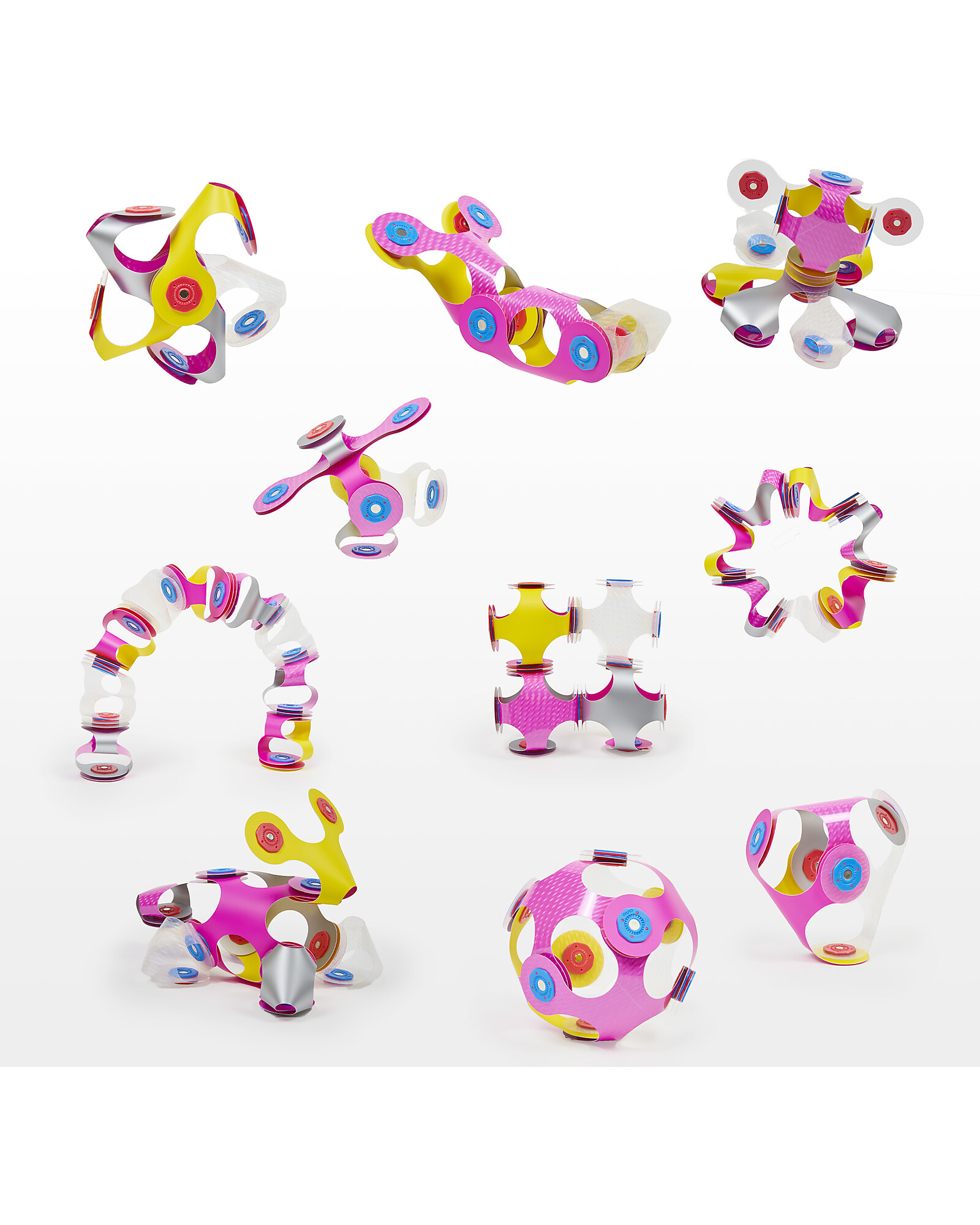 Endless possibilities to make your imagination come true, with Clixo! The Tiny&Mighty set consists of nine pieces in the characteristic Quad shape, from which you can create countless colorful 3D shapes, just a simple click and the powerful magnets will do the rest. Made of recyclable synthetic paper, it has magnets at its ends that will allow you to make shapes on shapes! It is also dishwasher safe! A versatile and colorful toy, which encourages STEAM learning, approaching scientific, artistic and mathematical disciplines through play. You can always carry it with you because Clixo is a compact, light toy that fits in your hand!