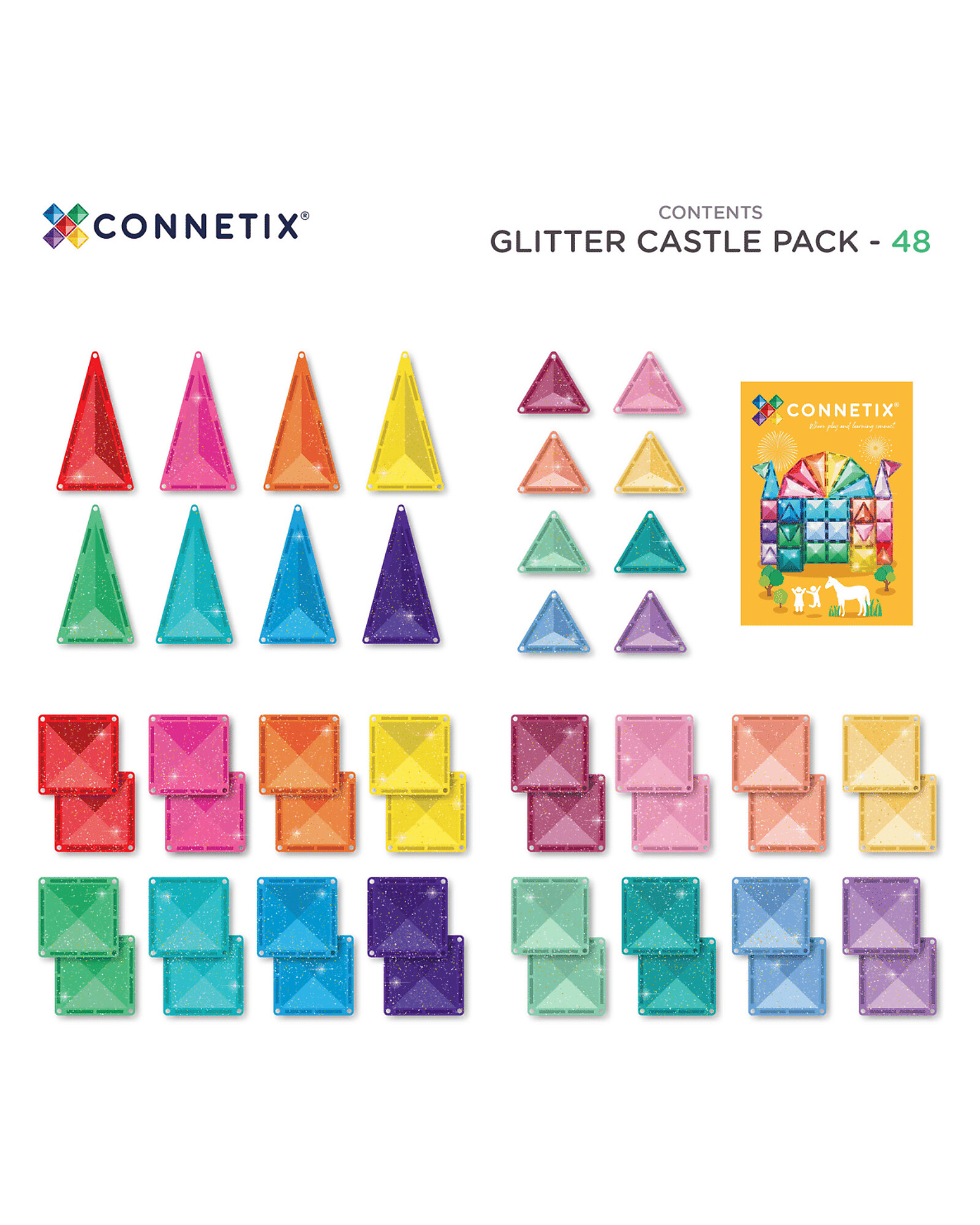 48 Pieces - Glitter Castle Set - 100% Non-Toxic ABS Plastic - STEM Learning!