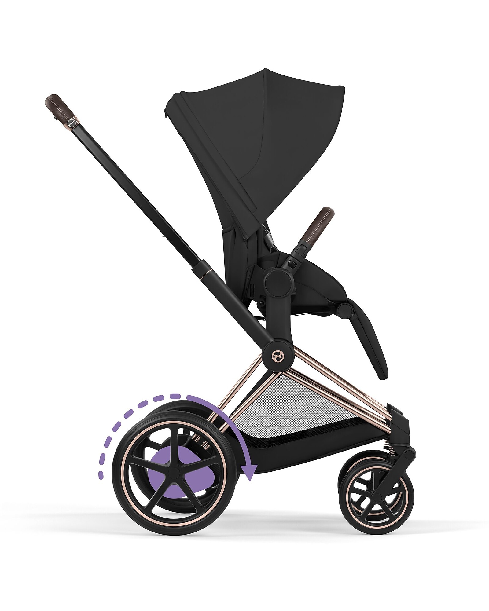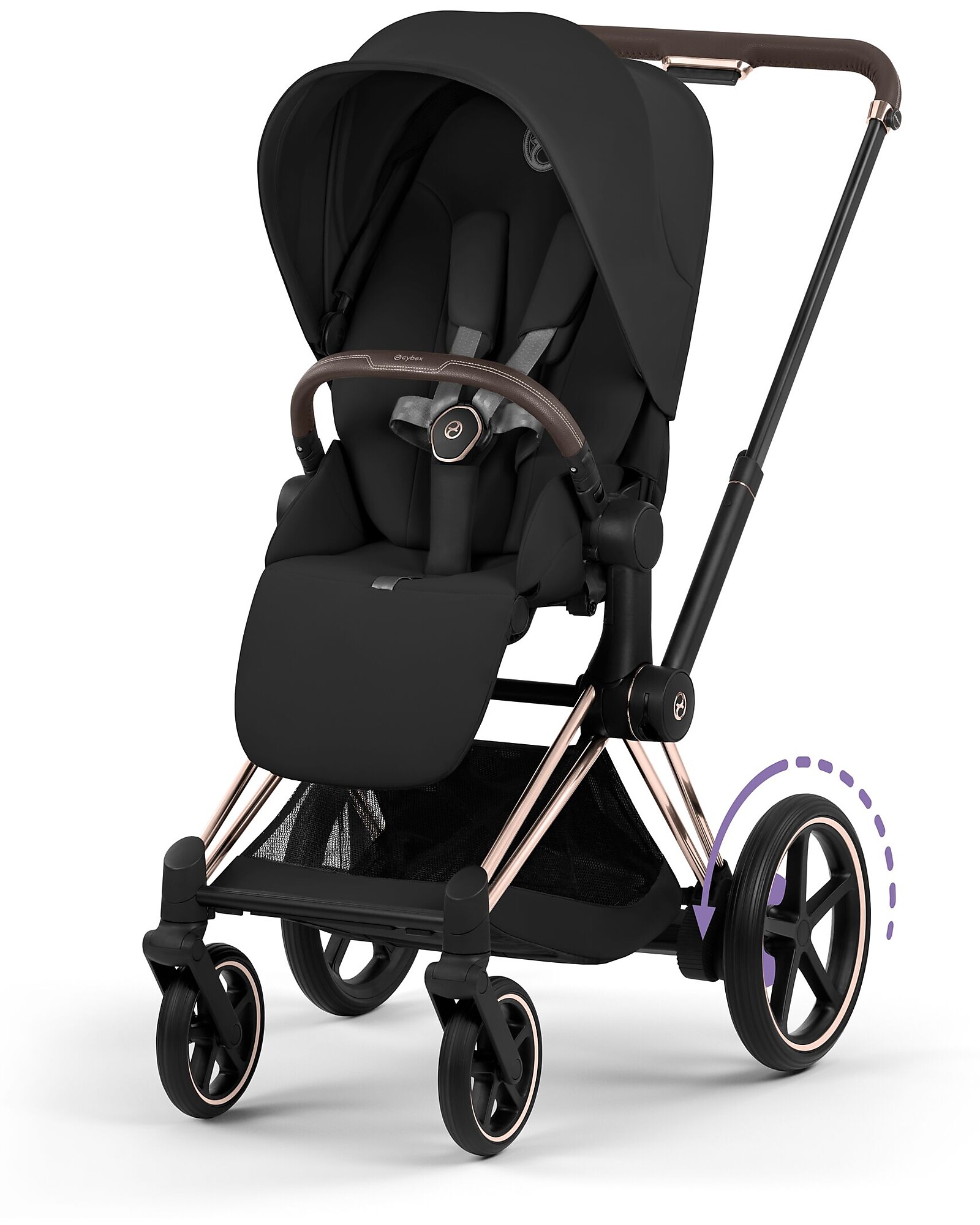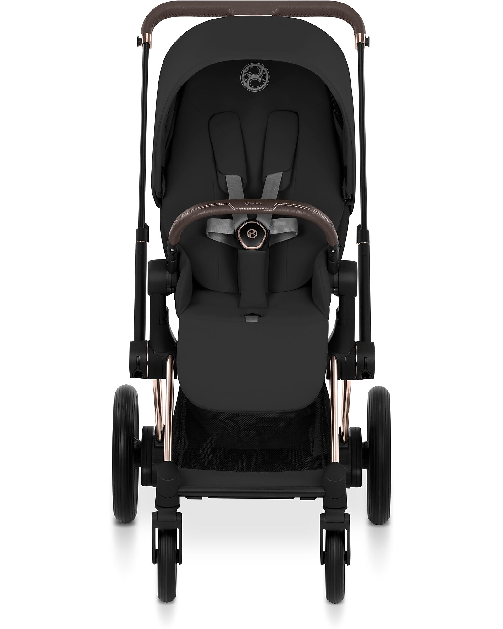 e-Priam Duo Comfort Rosegold Frame with Seat and Foldable Carrycot Sepia Black