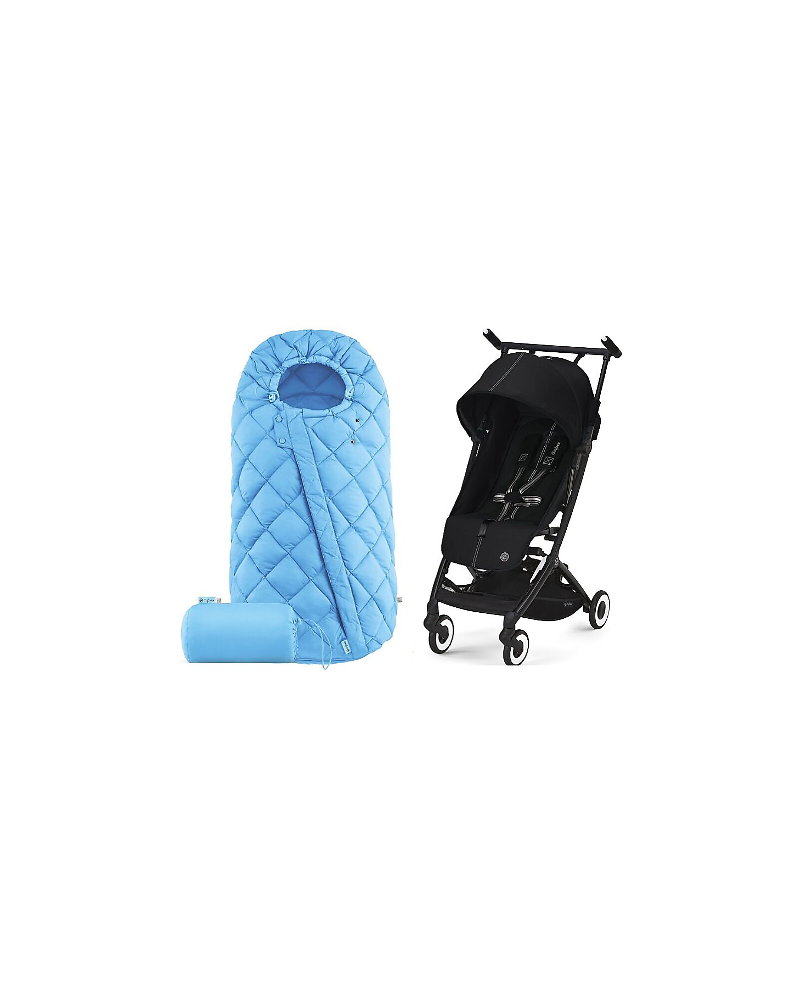 Libelle Duo - Libelle Stroller + Free Snogga 2 Footmuff - Moon Black/Black + Beach Blue/Turquoise