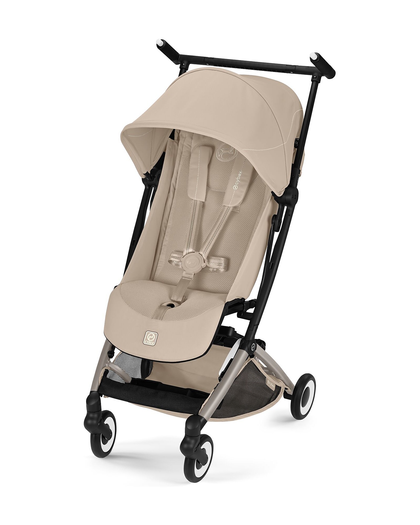 The Libelle stroller by CYBEX is an ultra-light and ultra-compact travel companion perfect for modern families, ideal for vacations or everyday trips without stress. Thanks to its compact design and folding that fits within carry-on baggage limits, you can easily store it in the car, train, or in the airplane cabin in just a few seconds. The seat offers infinite reclining possibilities and an adjustable footrest for maximum comfort, while the soft front suspension ensures a smooth ride on various surfaces. The practical One-Pull harness system allows you to secure your child quickly and safely. Designed to accompany your child's development from about 6 months up to around 4 years (max weight about 22kg), the Libelle combines mobility, comfort, and style in an extremely practical format.