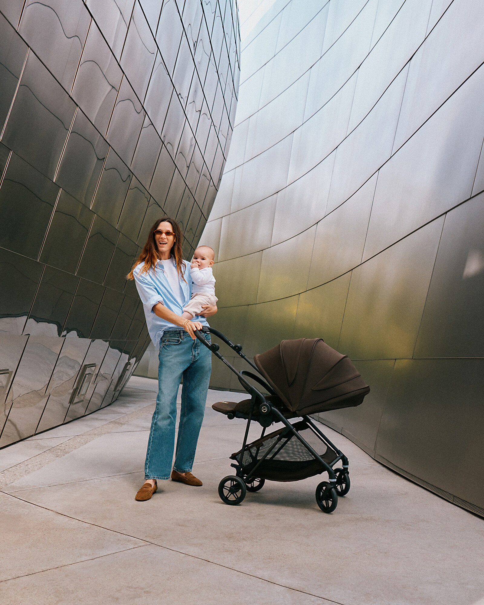 The Melio Carbon stroller is the perfect urban companion for dynamic families: extremely lightweight (only 5.9 kg) thanks to its carbon fiber frame, it opens and folds with one hand and is easily transportable anywhere — from crowded sidewalks to public transport. The seat is reversible (parent-facing or world-facing), fully reclinable, and equipped with a Newborn Nest for maximum comfort from the first months. The breathable backrest and the Supreme XXL sun canopy with UPF 50+ protection ensure well-being even on the hottest days. Designed from birth up to 3 years (up to 15 kg), it combines style, practicality, and comfort for you and your baby.