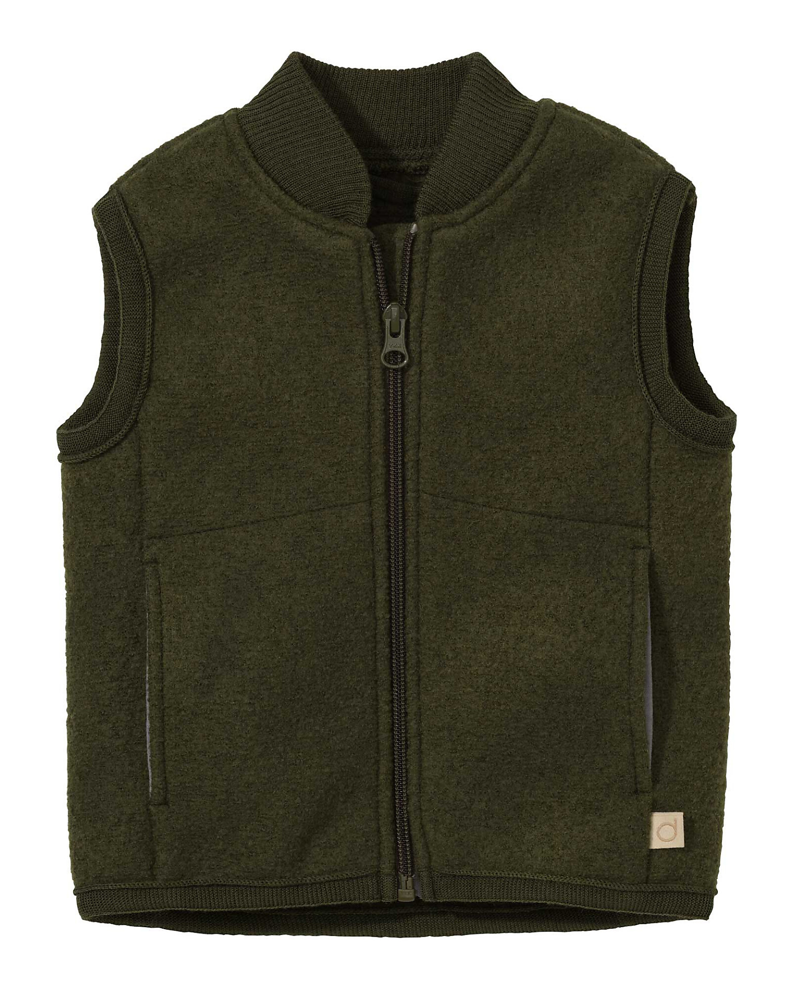 Boiled Wool Vest, Olive - 100% merino wool