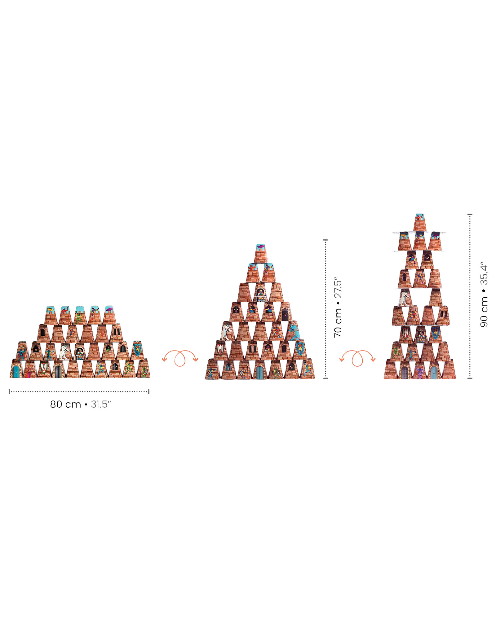 Building Game: 30 cones and 4 bases to stack and create dozens of castle combinations, from the tallest to the most spectacular, pushing your building limits. Then you get three chances to knock everything down and start again.
