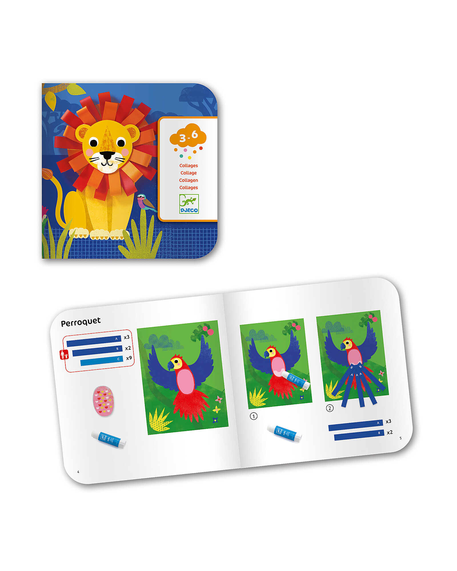 Are you looking for a fun activity for your child? A Djeco collage activity to complete the 4 images in a cute way! By folding the strips of coloured paper, your child will be able to create the same textures and characteristics of their favourite animals.