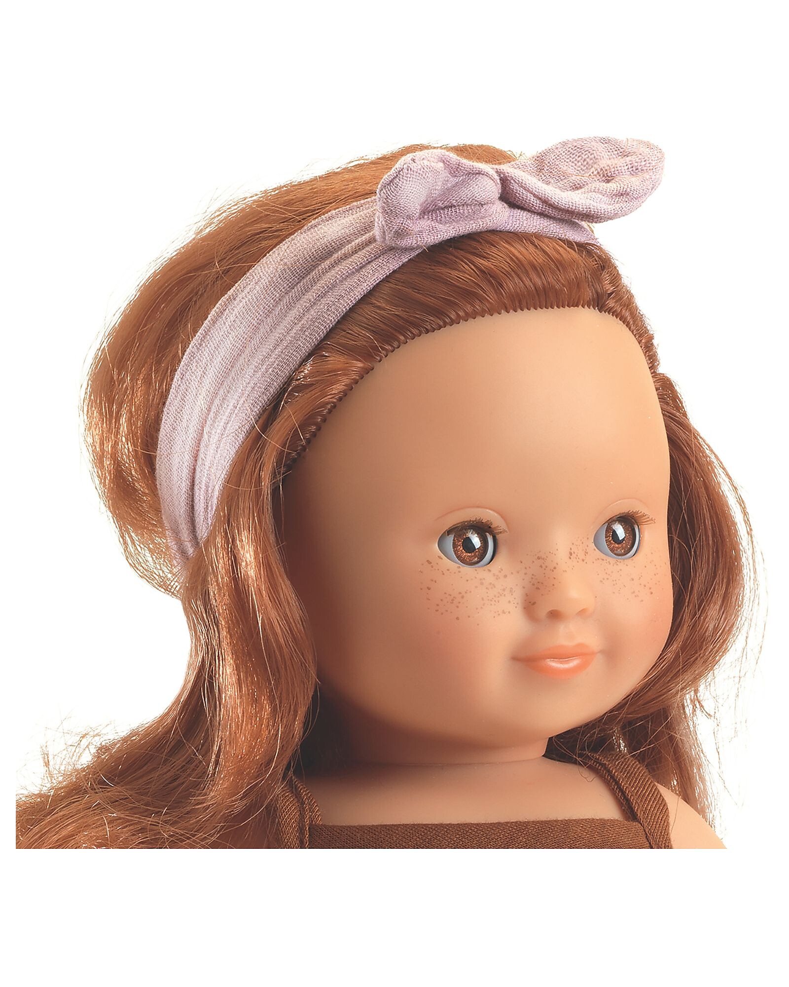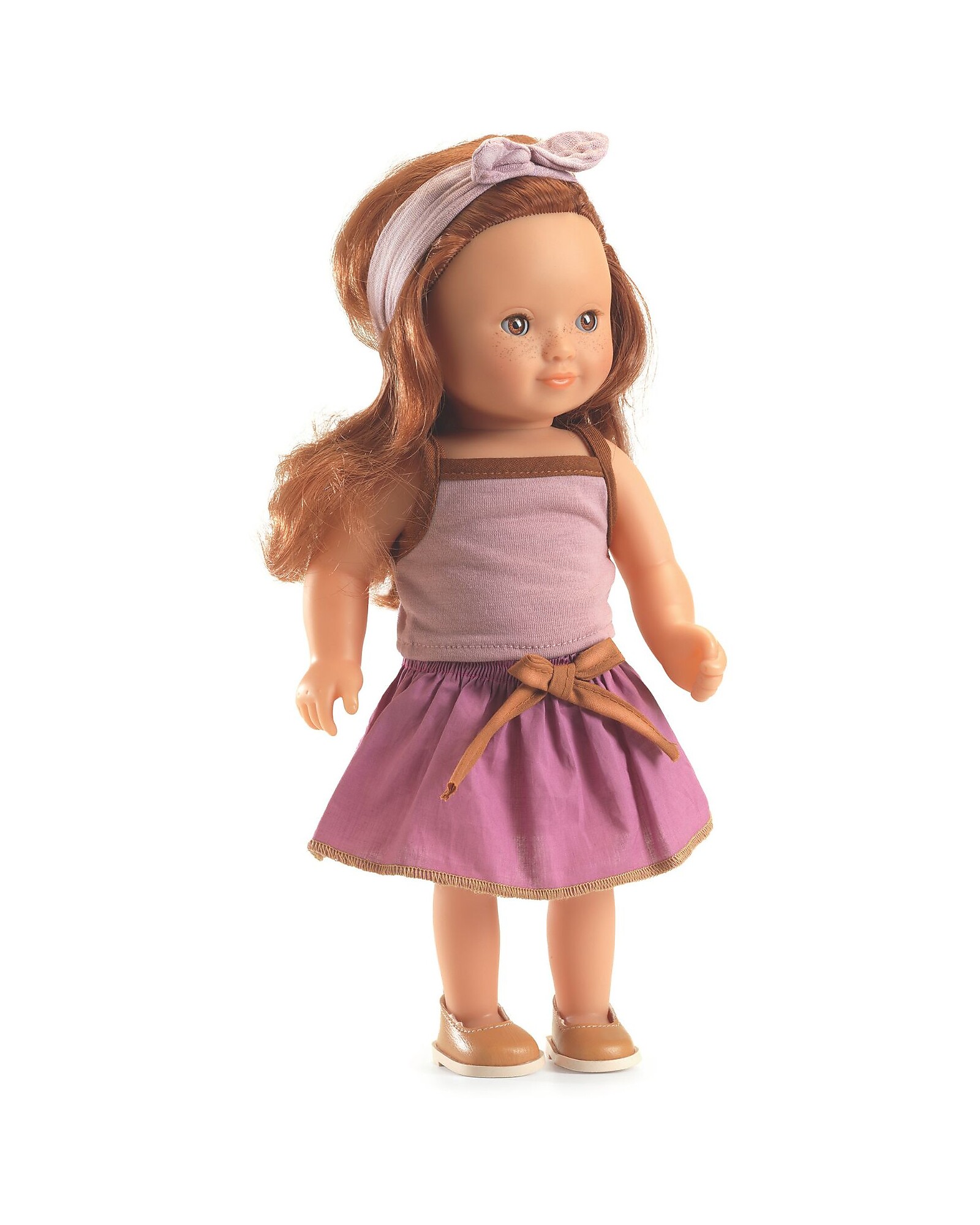 The "Lovely Sophie" doll by Djeco is a charming 32 cm fashion doll, perfect for sparking children's imagination. With her long, easy-to-style red hair and adorable freckles on her face, she will quickly become a special companion. When laid on her back, Sophie closes her pretty brown eyes, just like a real doll! She wears an outfit consisting of a skirt, a pair of pants, and a two-tone sleeveless t-shirt, paired with a matching headband and ballerina pumps. The clothes are easy to put on with hook-and-loop fastenings and can be machine washed at 30°C. Made of soft-touch vinyl with a neutral scent, she is the perfect friend for endless playtime adventures!