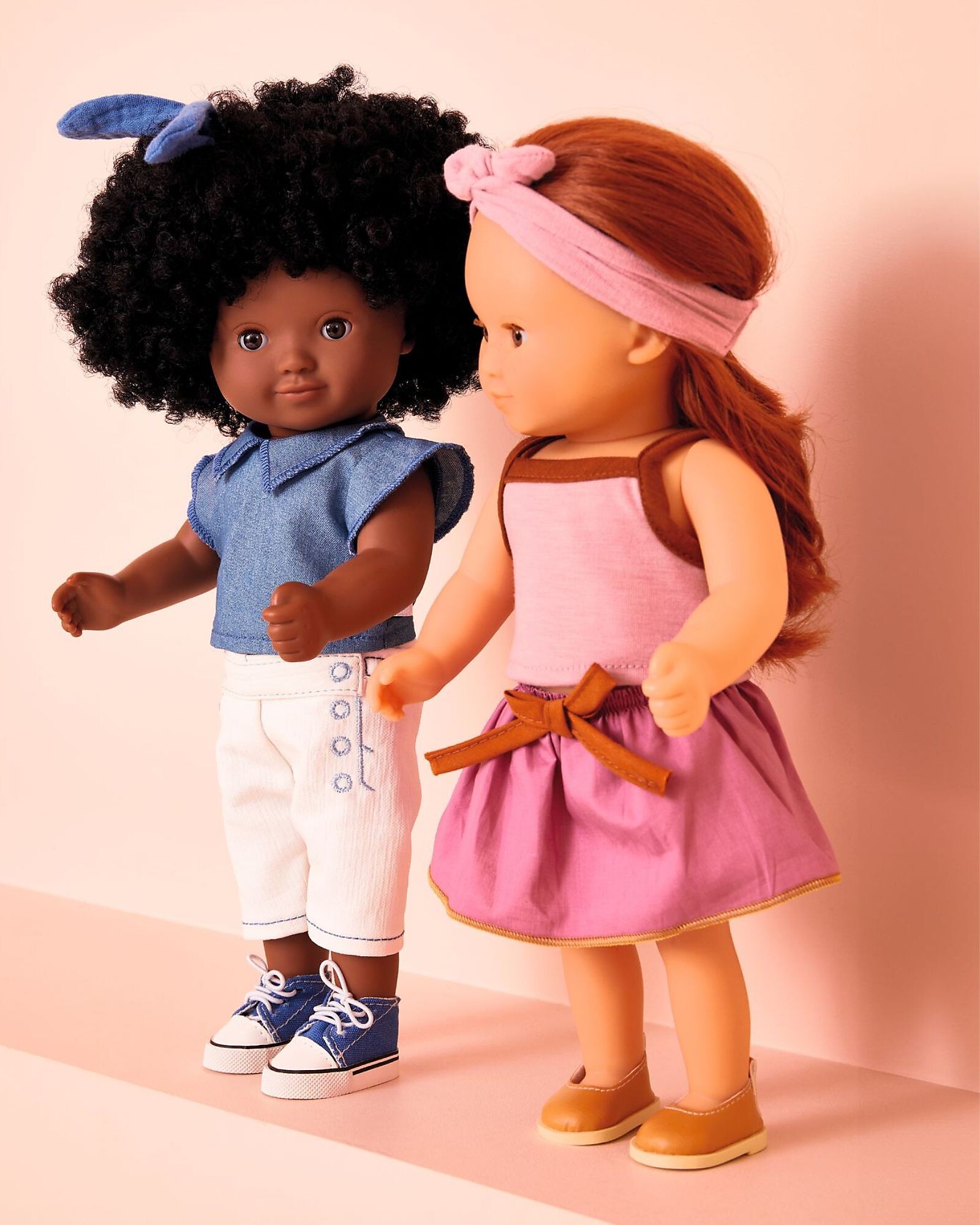 - Includes: 1 vinyl girl doll (32 cm) with long, wavy hair, 1 two-tone sleeveless t-shirt, 1 skirt, 1 pair of pants, 1 headband, and 1 pair of ballerina shoes