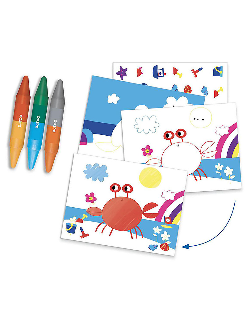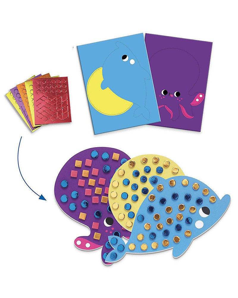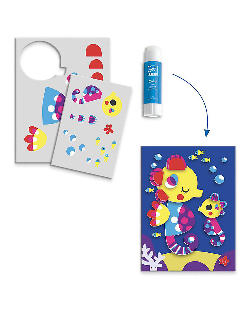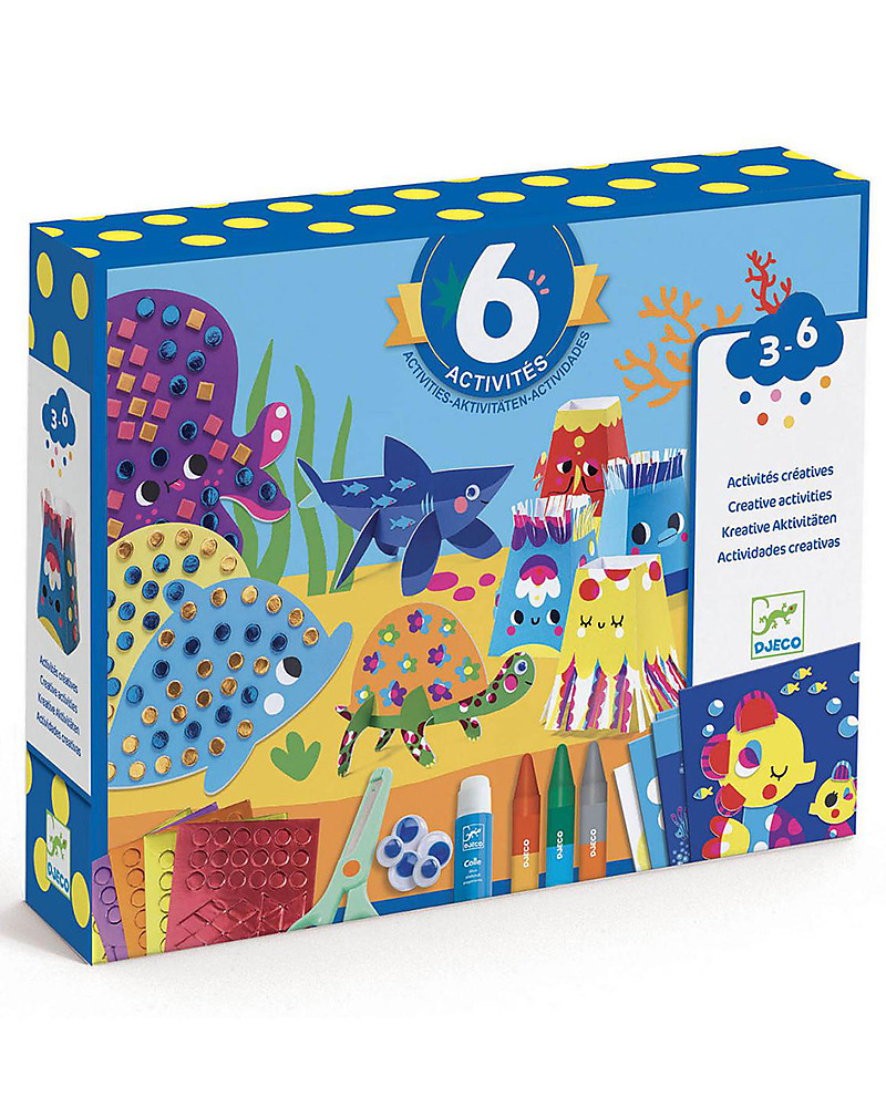 That's a new, complete game, perfect to spend hours of fun this summer. Seaside delight by Djeco is a very complete set of 6 creative activities and numerous projects on the theme of the sea: collage, colouring, mosaics, cutting, assembly, and transfers. Hours of manual activities to discover different creative techniques. All the accessories are provided so that children can engage in any activity, following their own wishes and curiosity, while the booklet with step-by-step descriptions will guide them in their creations.