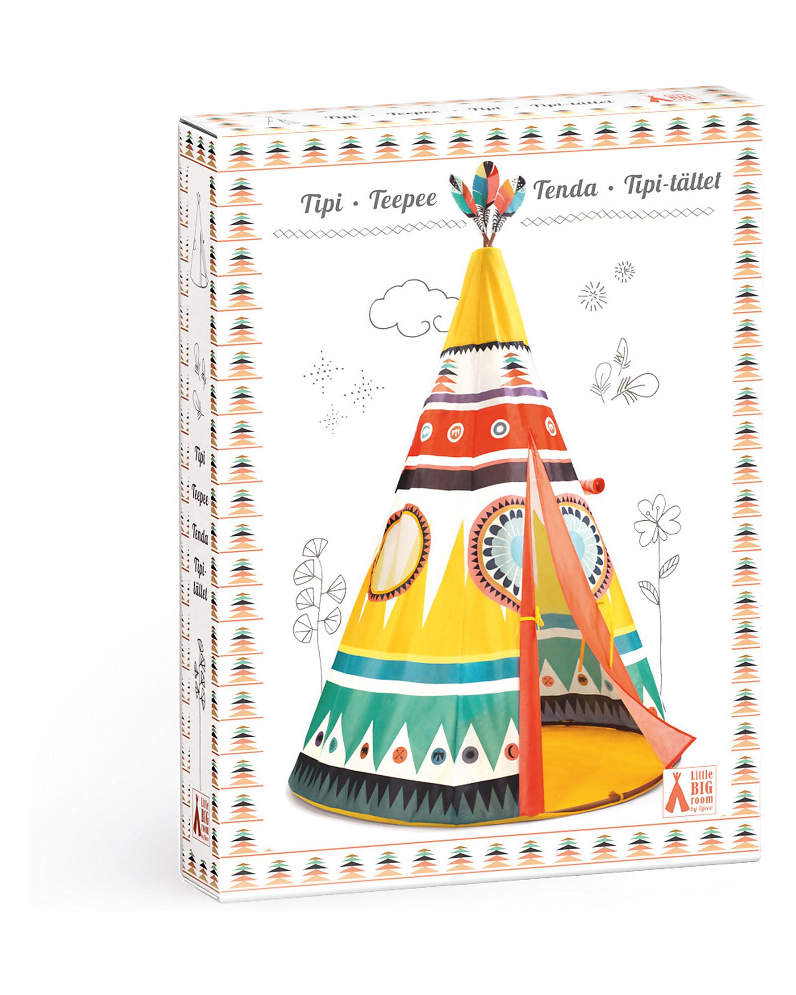 Let's play for the American Indians! A beautiful and colorful tent to spend the afternoons in the role play! But not only that, it is also a small shelter where every child can create his own little personal space! This is the tipi tent of the French brand Djeco, really big and easy to assemble! Designed with special patterns and cheerful colors, has in the tip of colored feathers, typical of Indian curtains!