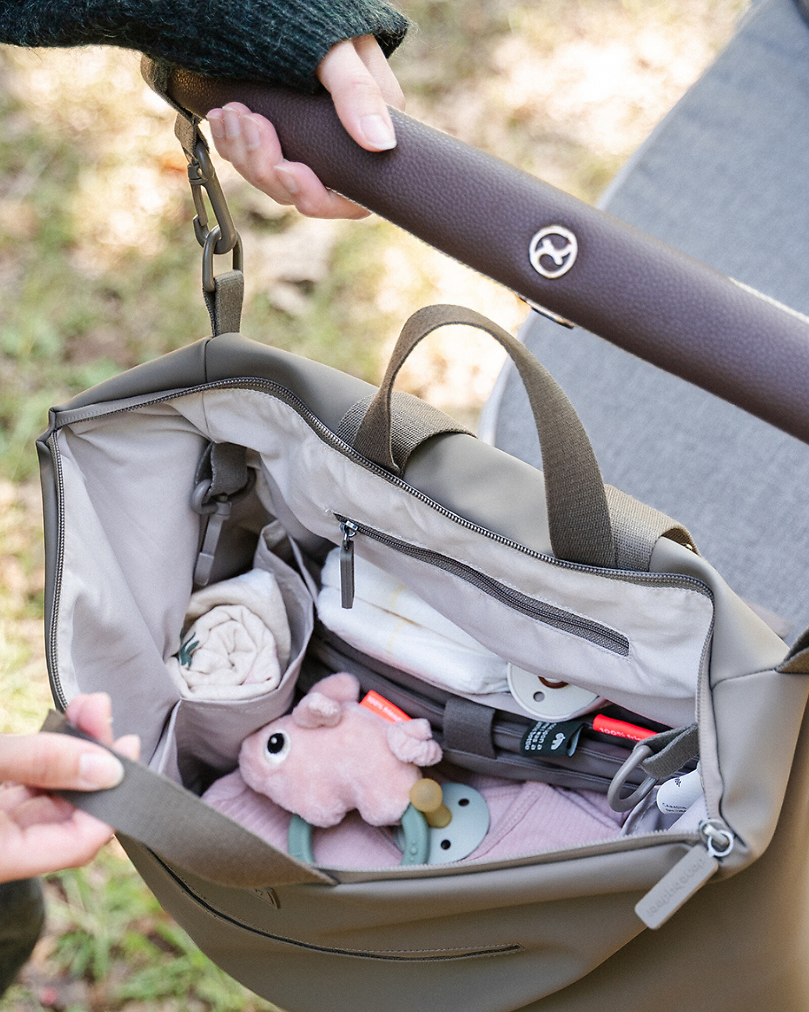 The Done by Deer Changing Backpack combines functionality, long-lasting design and sustainability. 38 PET bottles are being recycled when manufacturing both the outer fabric and inner lining. The spacious changing backpack gives you the freedom to roam hands-free and bring along all your baby essentials. The wide opening allows for easy access while the seven inner pockets and one outer zip pocket make organising a breeze. A practical foldable changing mat with waterproof surface and two stroller hooks are included. Both the waterproof zippers and surface make the backpack weatherproof. Adjustable shoulder and sternum straps make the backpack comfortable to wear.