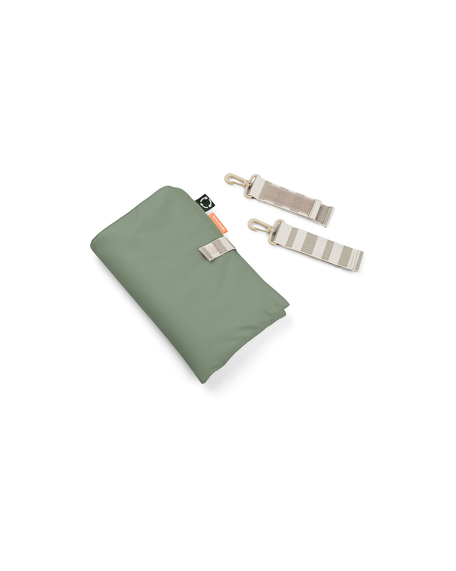 The bag has an internal thermal pocket to keep a bottle both warm and cold, is waterproof and are made from 100% recycled polyester from a total of 48 PET bottles. The straps on the outside make it easy to attach the bag to the stroller.