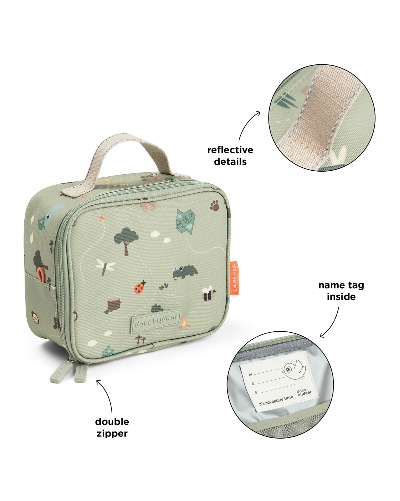 The large main compartment with mesh pocket is perfect for storing cooling elements or small snacks, while the dual zippers with easy opening ensure quick and simple access. The reflective detail on the carry handle enhances visibility, and the internal name tag allows easy identification.