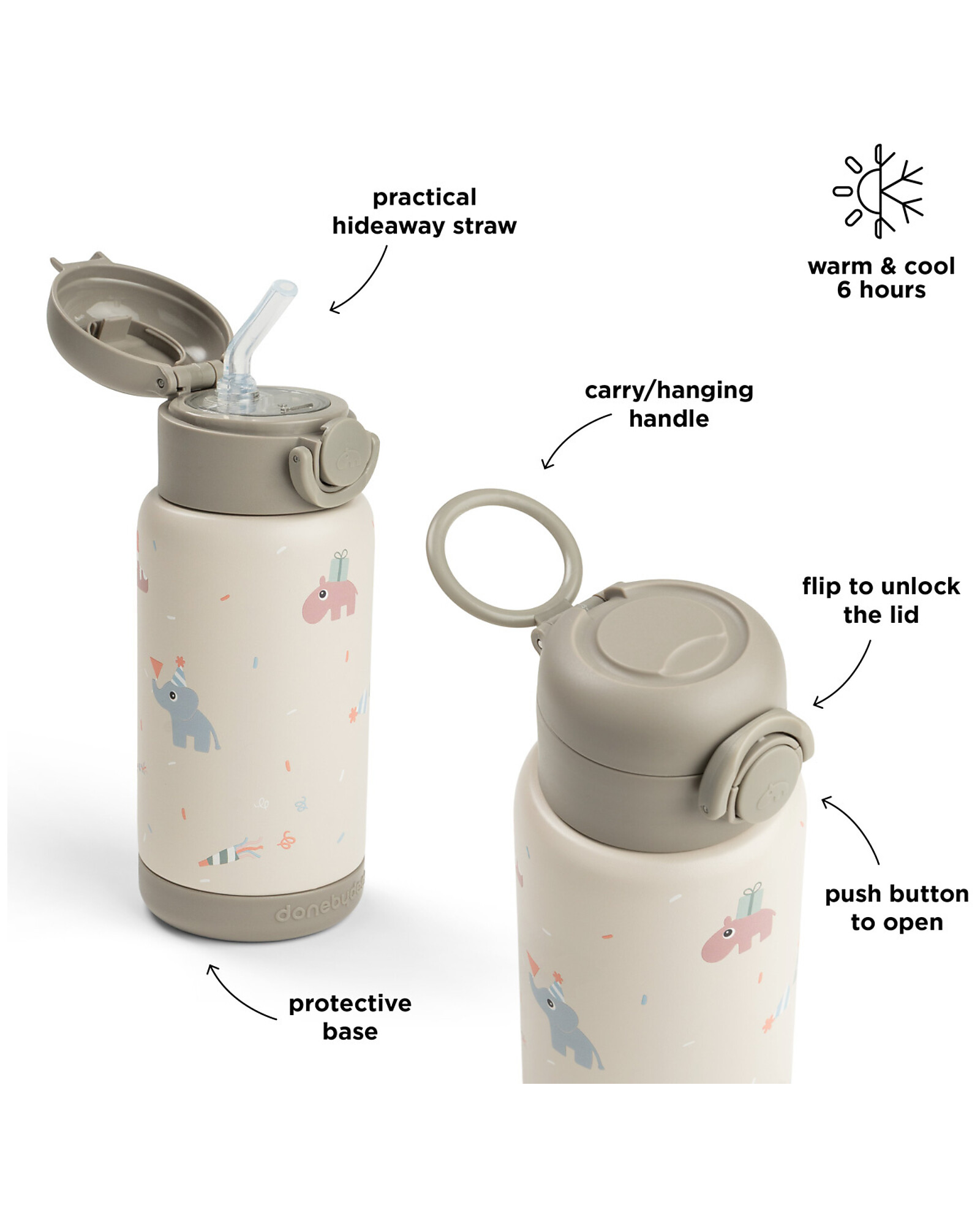- Same shape as existing Done by Deer insulated bottles, now with a straw lid