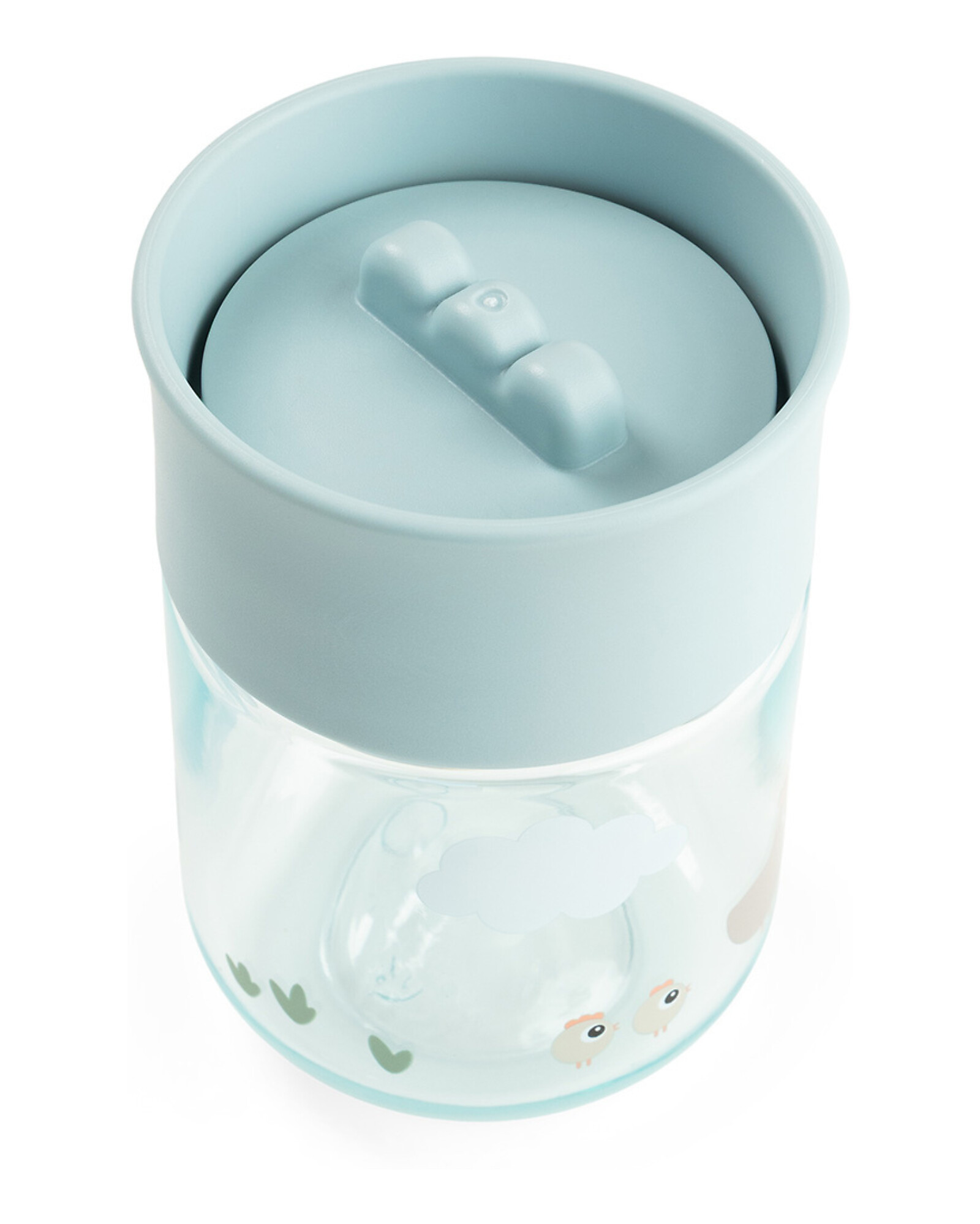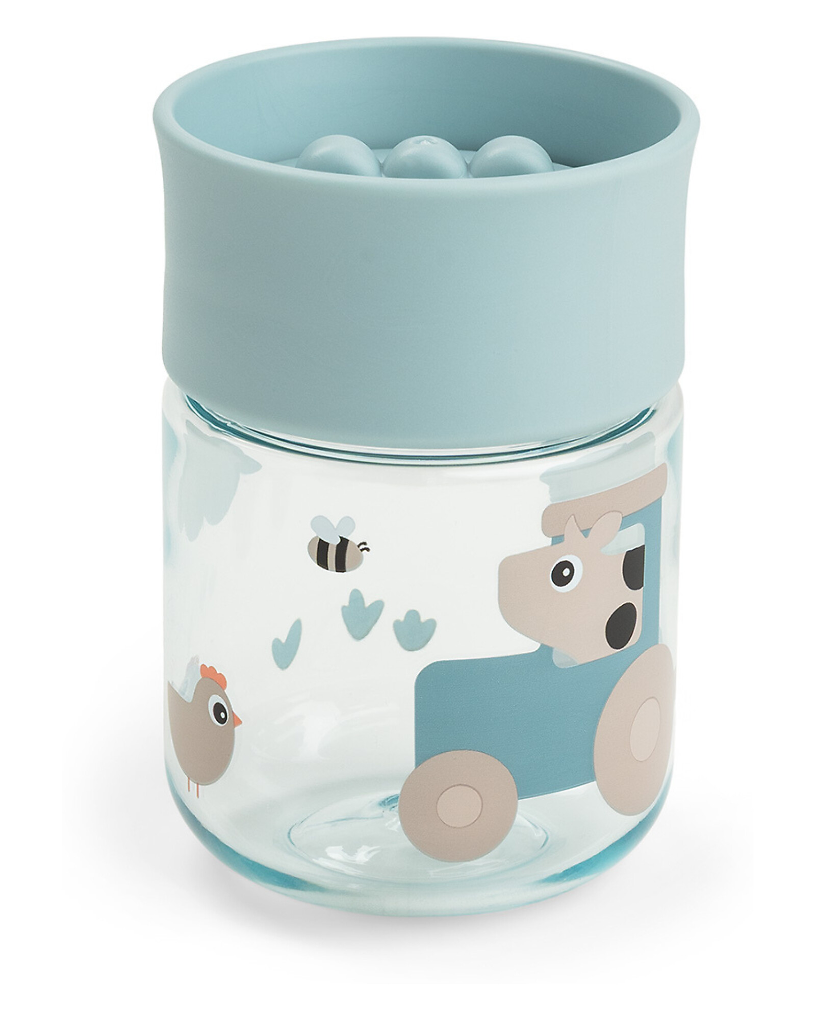 Learning Cup with 360° Drinking Rim - Spill-Free - Tiny Farm - Blue - 260 ml - 9m+