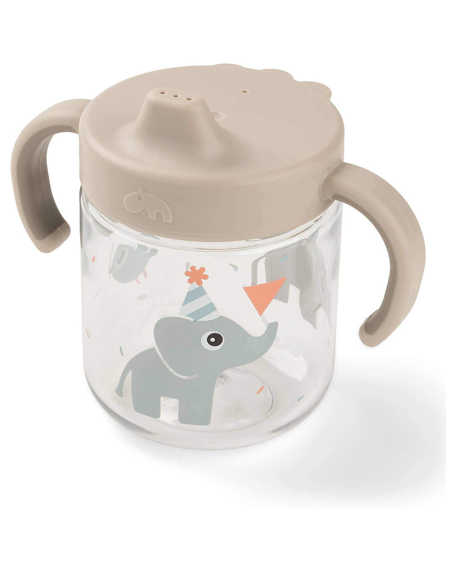 A learning cup with spout designed to gently accompany your little one's first sips independently. Thanks to its antislip handles, it provides a secure and confident grip for tiny hands, promoting independence. The anti-drip spout helps prevent little mishaps, making every drinking moment an experience of success and self-esteem. Its adorable style and durable material make it an ideal choice for everyday use, with a touch of sweetness that wins over both kids and parents.
