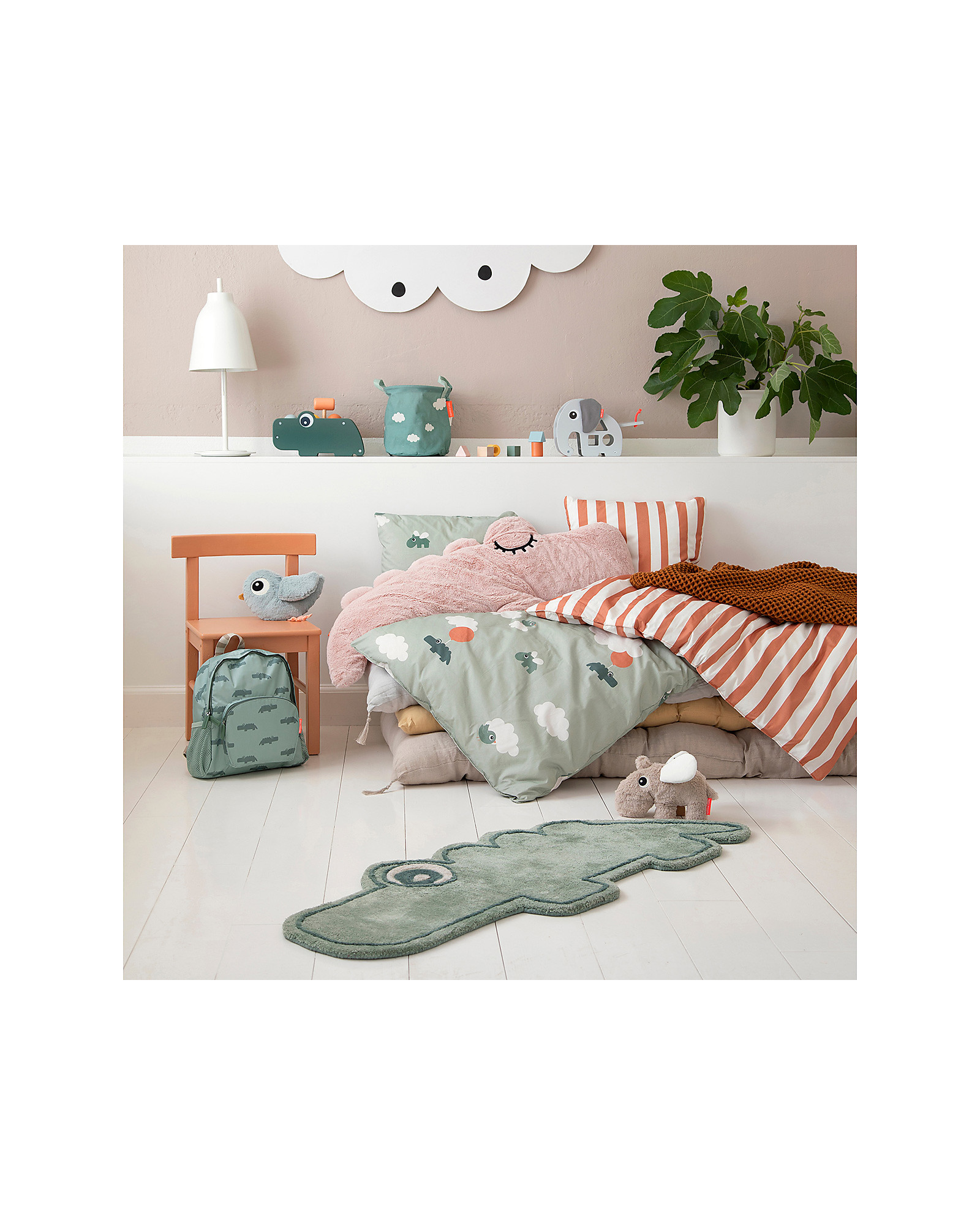 The cute and cuddly hippo will be a loyal partner during playtime or a safe friend to hold when going on adventures.